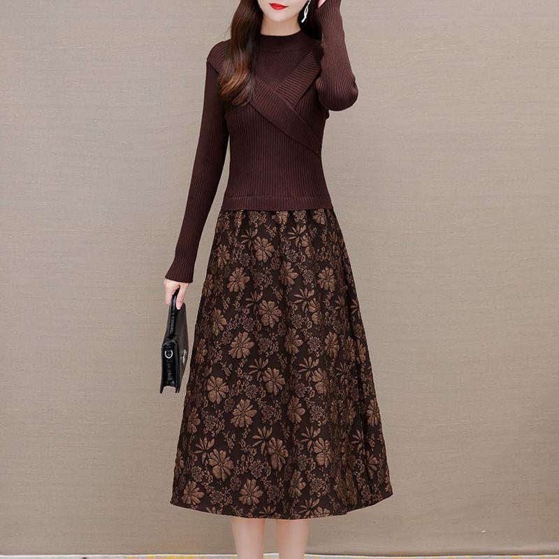 2025年 レディース マキシ丈ワンピース ニットワンピース プリント柄 秋冬 セーターワンピース エレガント
