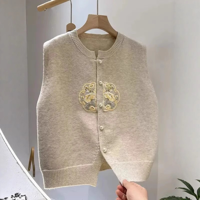2025 夏の新スタイル百塔エスニックスタイルカーディガンチョッキ中国風無地ファッションラウンドネック新中国風の女性のベスト