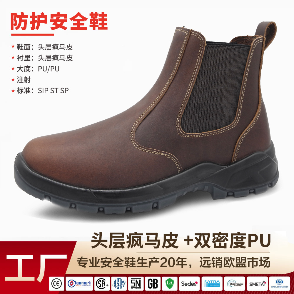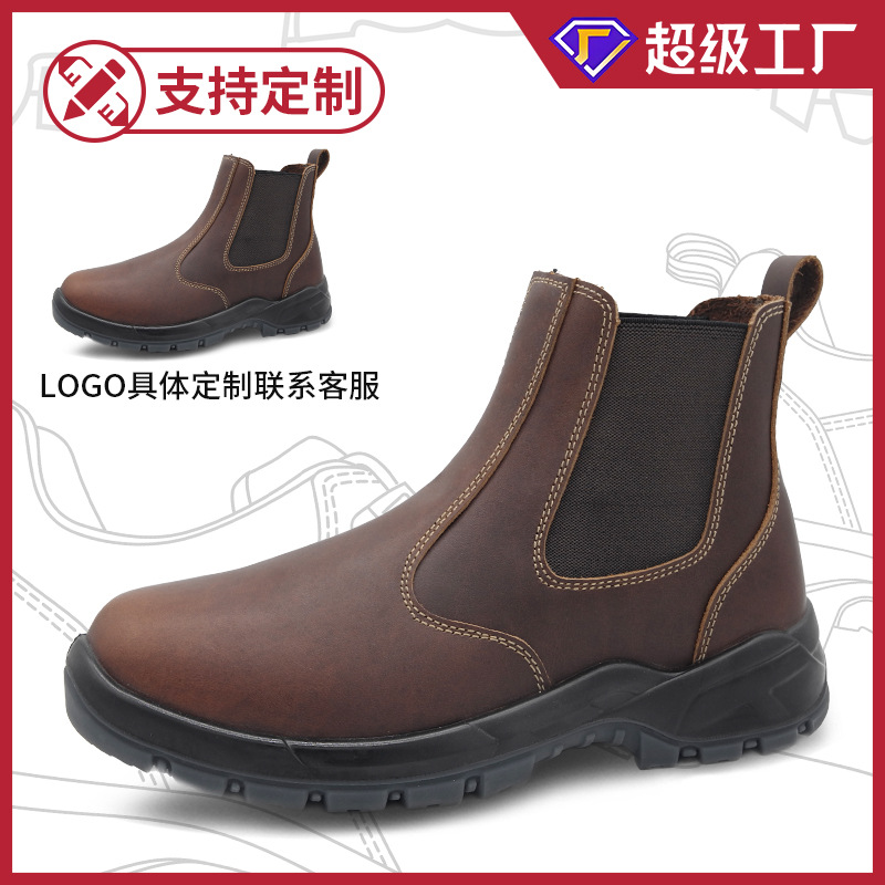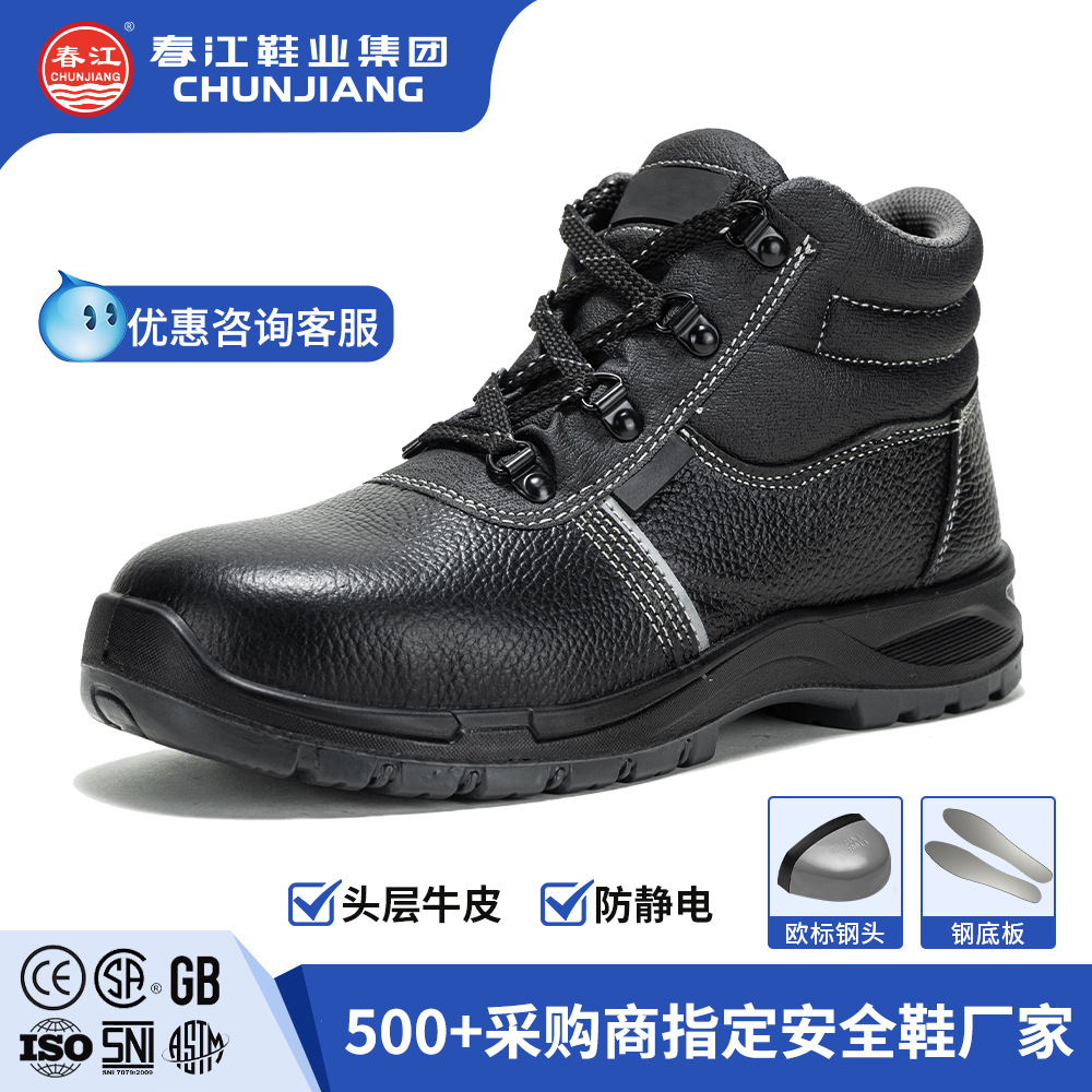 四季ハイトップ労働保護靴、帯電防止牛革、耐スマッシュ、耐穿刺安全靴、防水性と耐摩耗性の建設現場保護靴、男性用