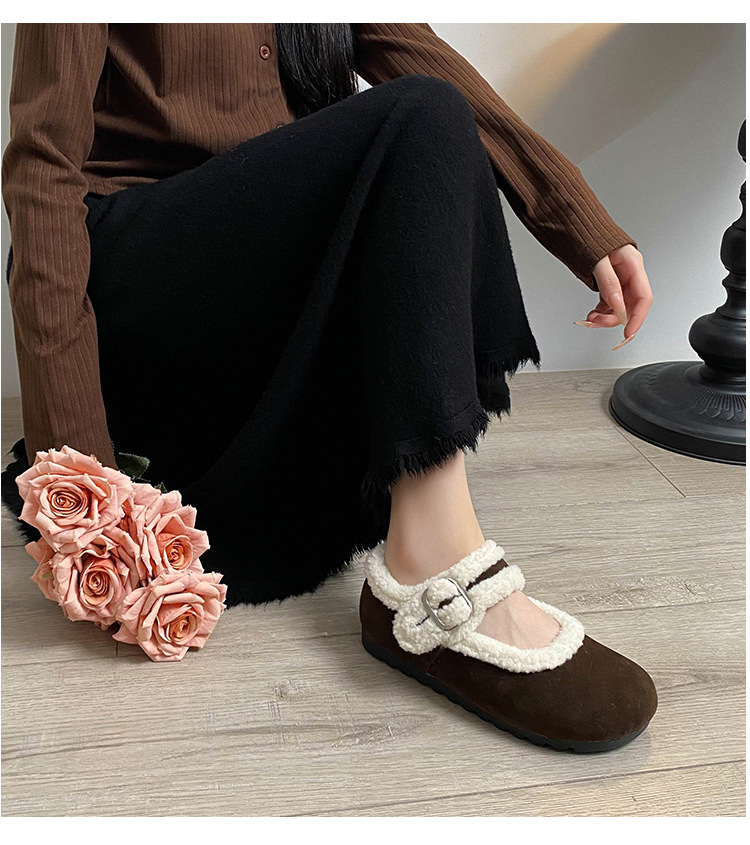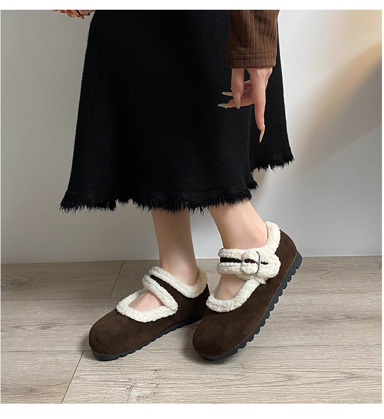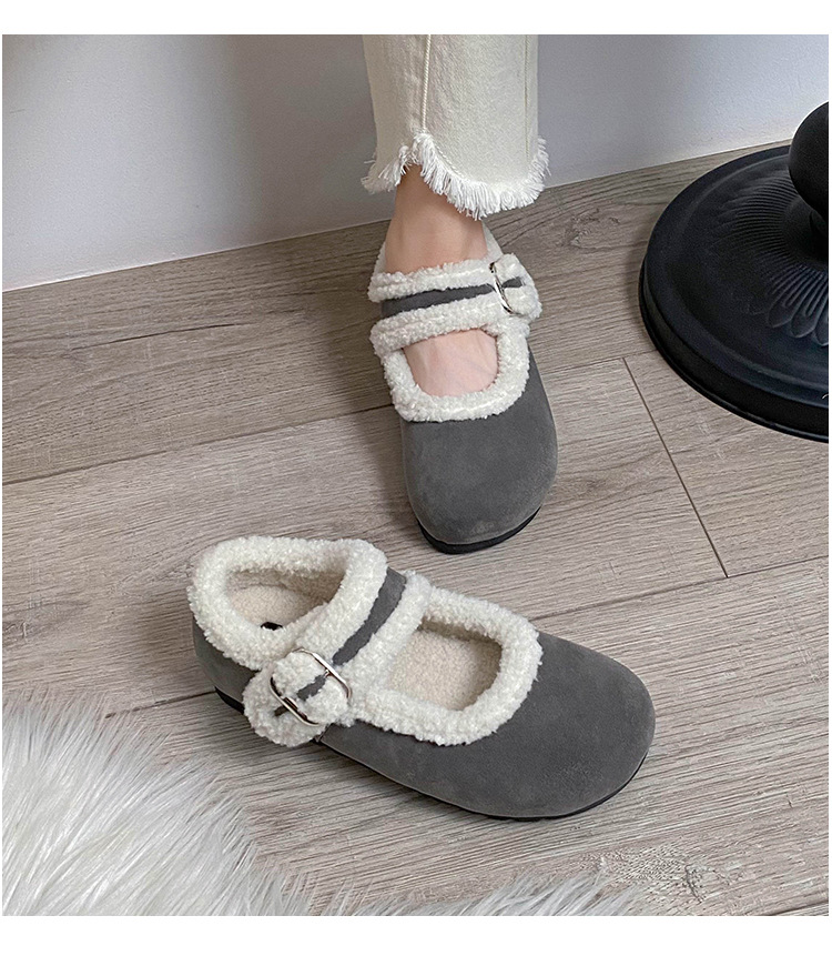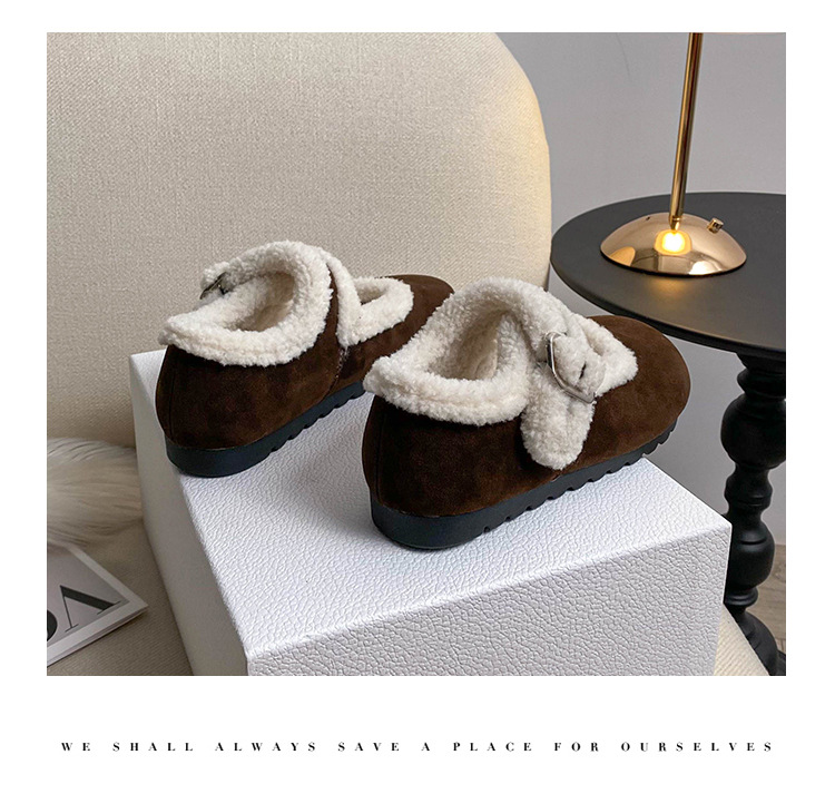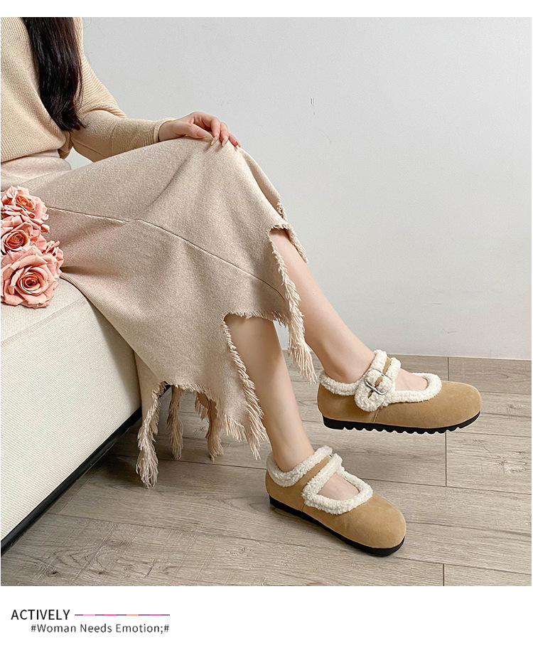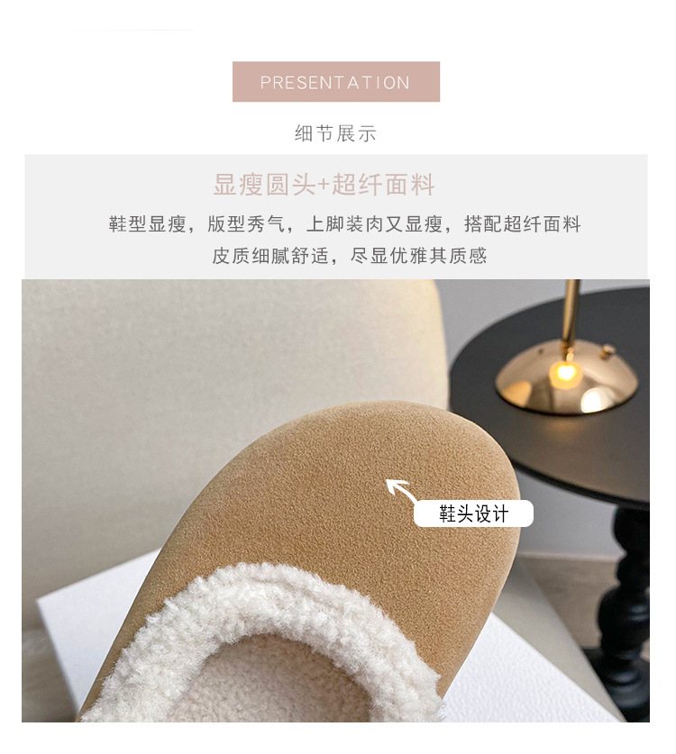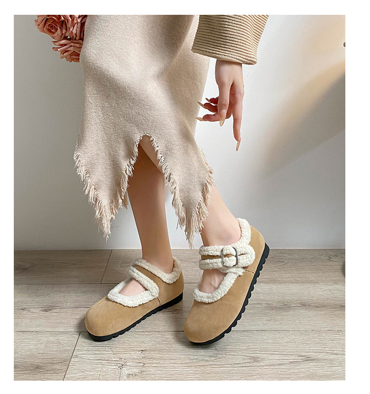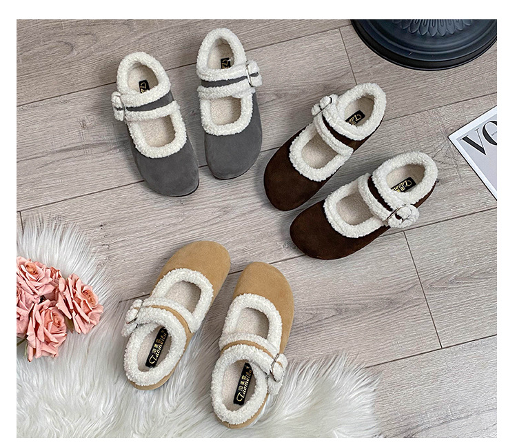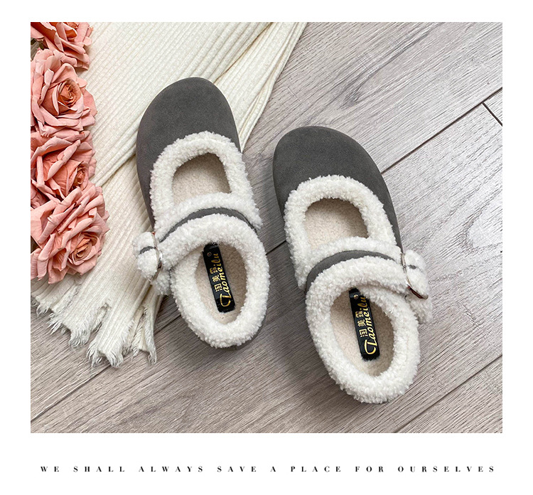 丸頭スエード暖かいスリッポンシューズ、アミウ、厚底、裏起毛、厚手の綿靴、毛皮ローファー、女性用