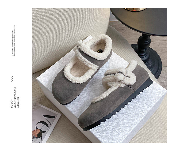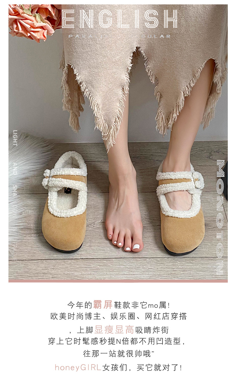 软底毛毛勃肯鞋女棉鞋冬季外穿2025新款保暖复古加绒一脚蹬豆豆鞋