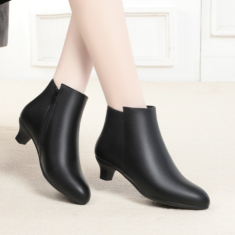 柔らかい皮の秋冬のタイプの靴の小さい靴と黒い仕事の靴の靴の出勤のショートブーツの中で女性の靴の冬のベルベットのブーツと