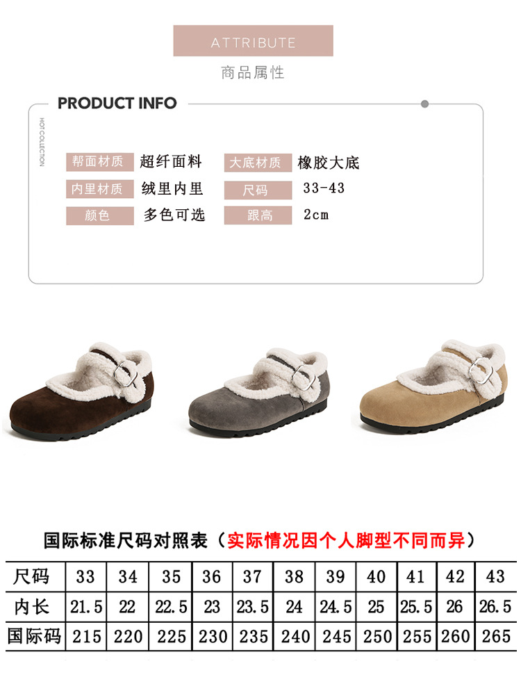 2025冬季新款女鞋厚底勃肯雪地靴女加绒加厚毛毛鞋乐福鞋保暖棉鞋