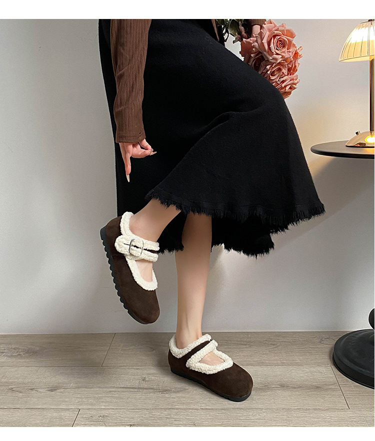 ラムウール2025新作フラットソール万能厚底ドライビングシューズレディース冬用裏起毛アウターウェア暖かいファーシューズレディースローカット
