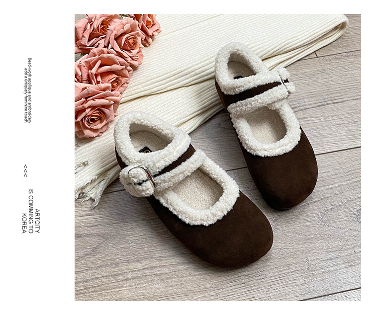 フランス風ファー付きシューズ レディース 冬用 厚底 ネット人気 ビーニーシューズ 裏起毛 コットンシューズ 大きいサイズ レディースシューズ ビルケンシュトック風シューズ 41~43