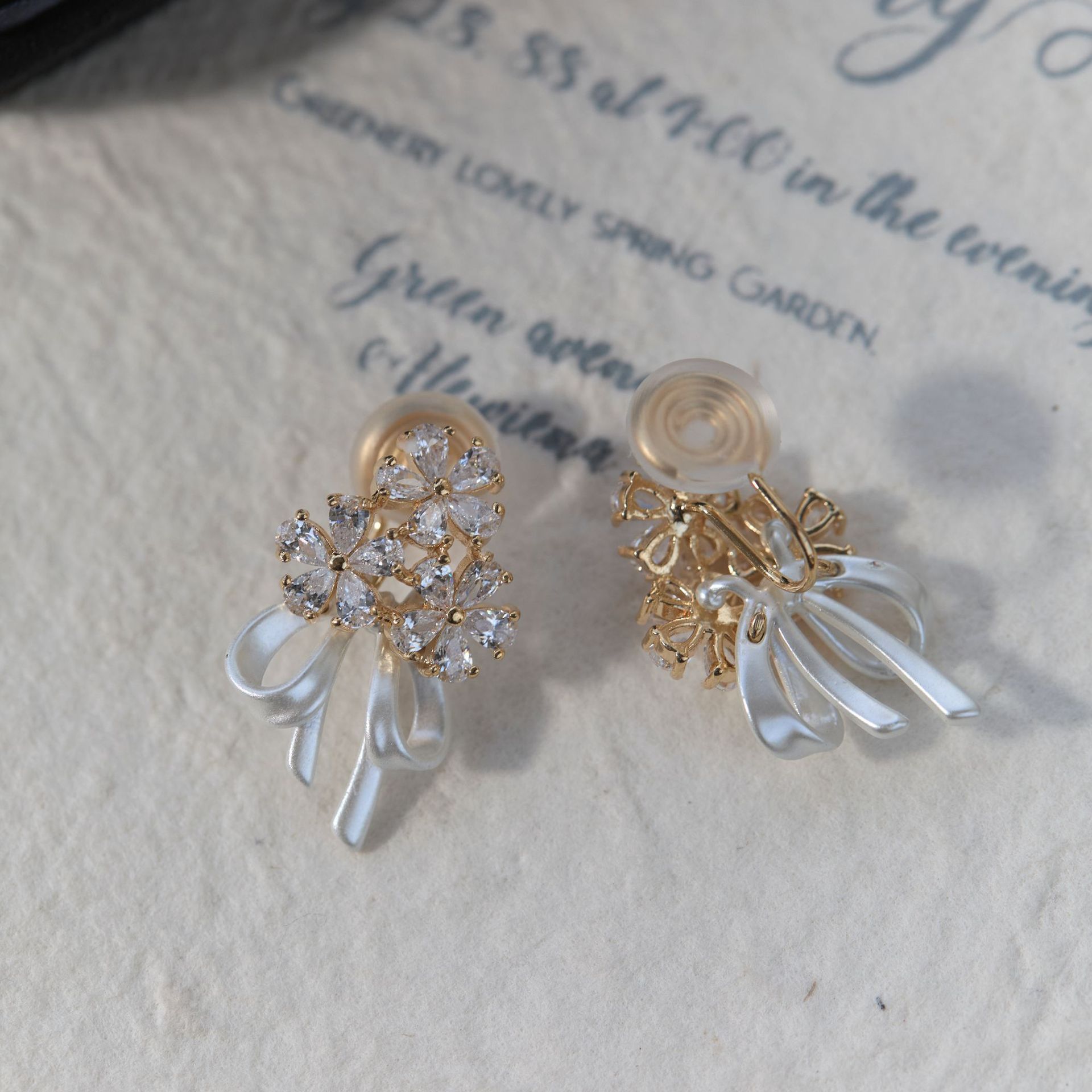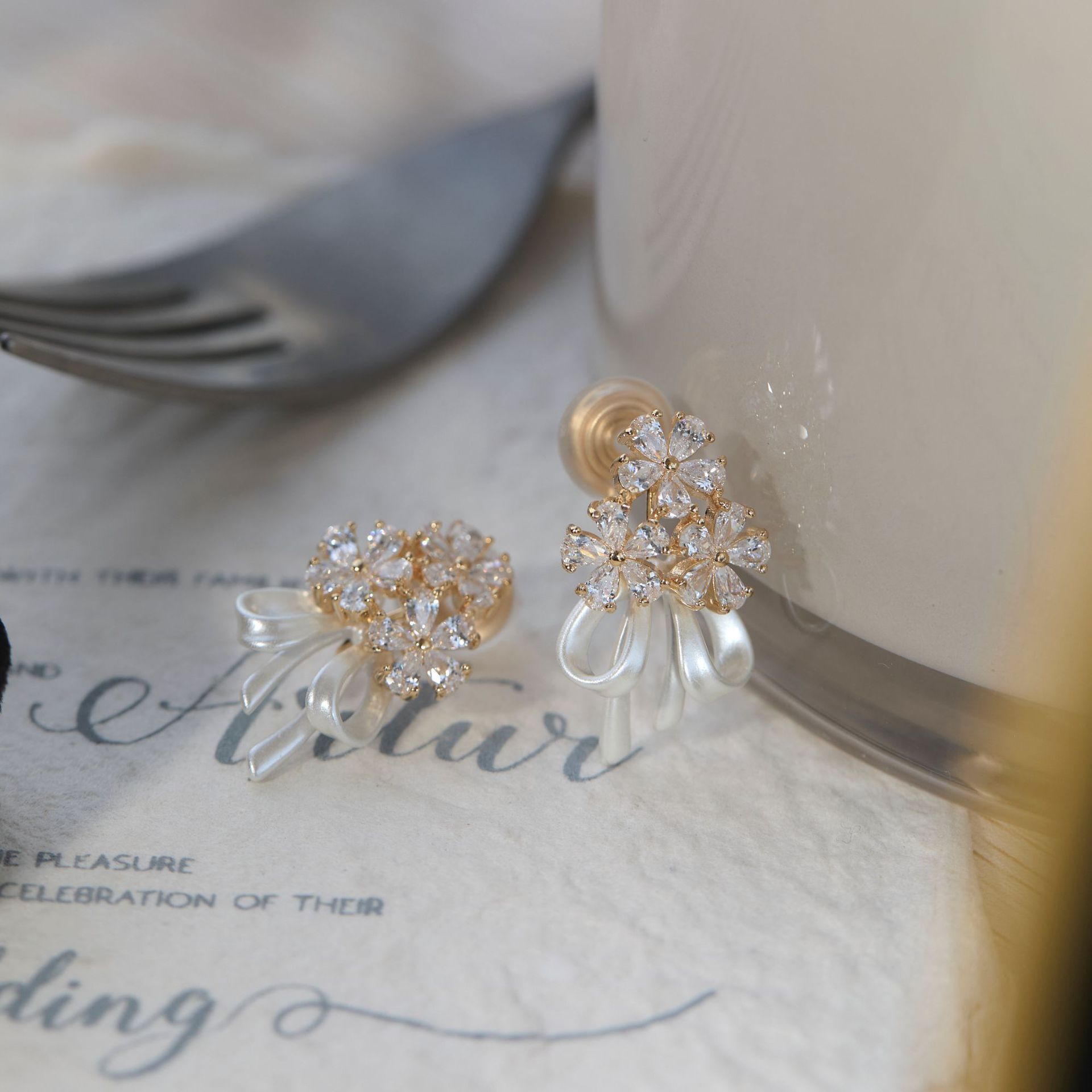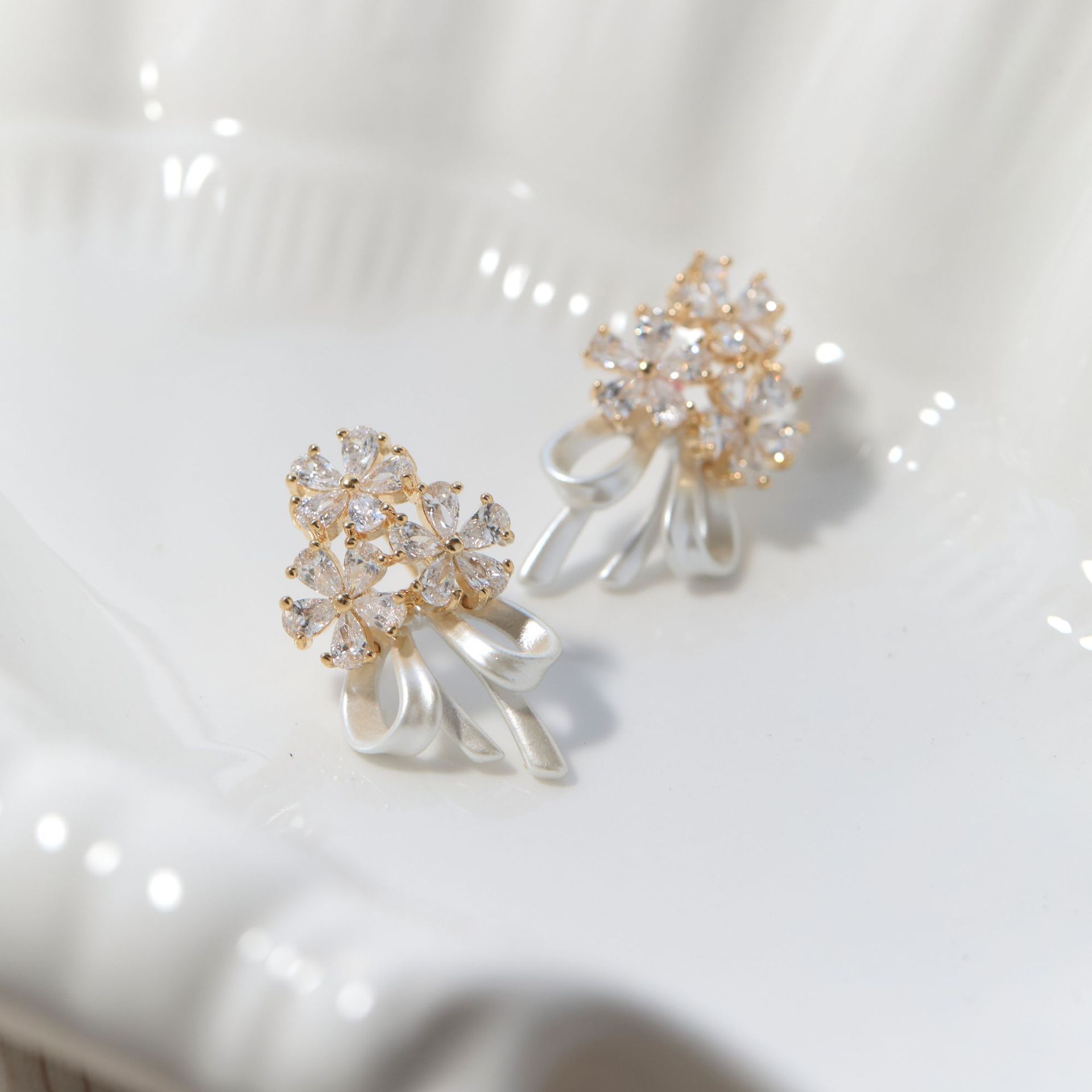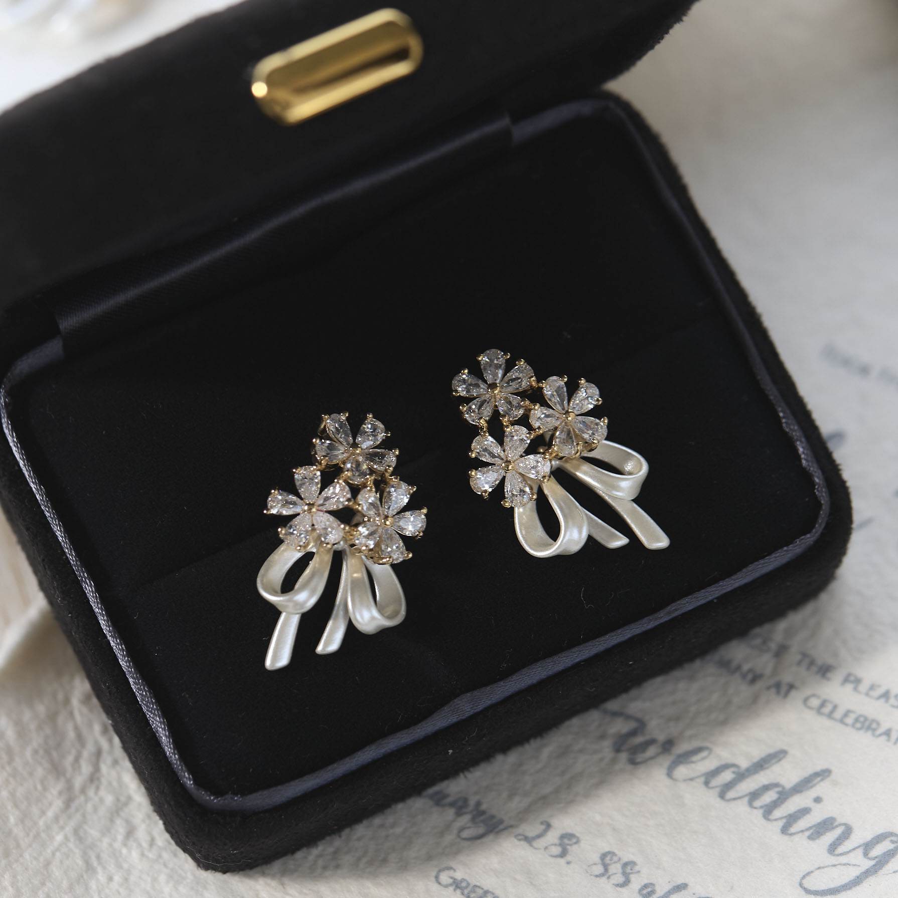 【花的嫁纱】手捧花耳环仙气花朵蝴蝶结丝带拍婚纱照耳钉耳夹女