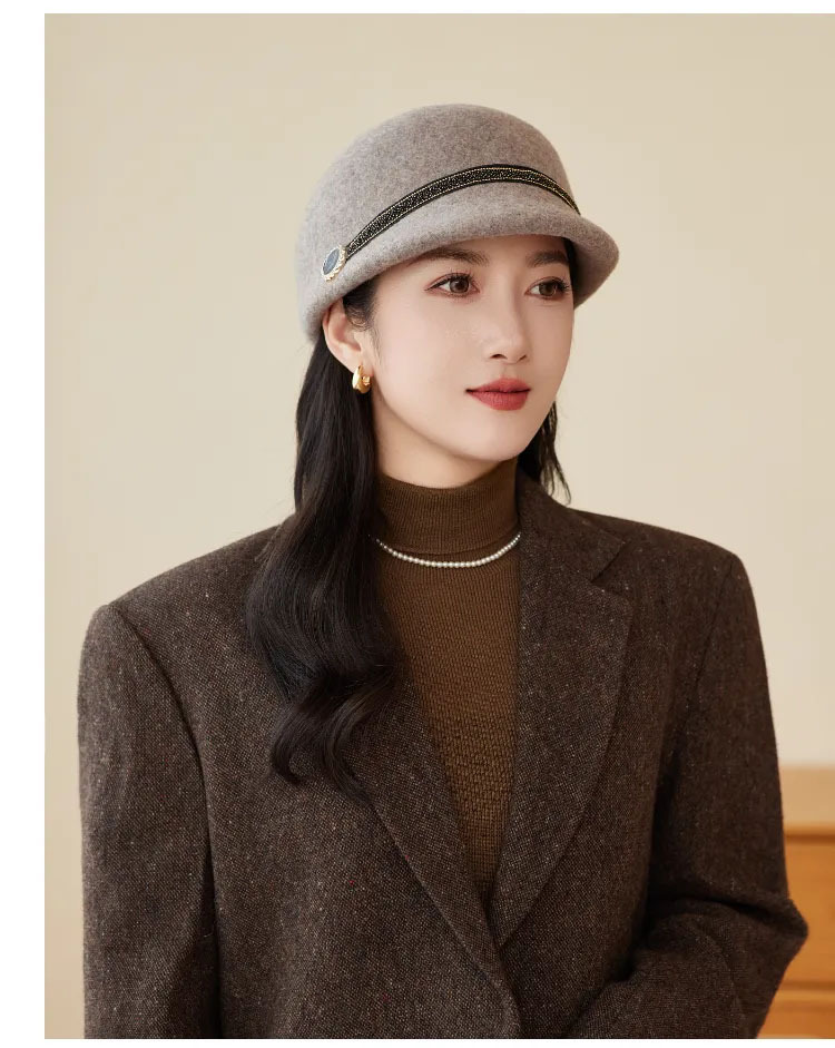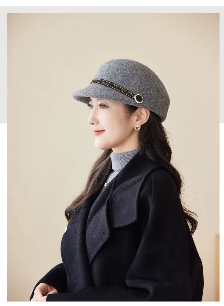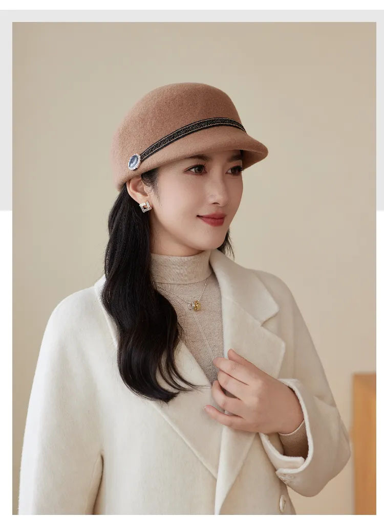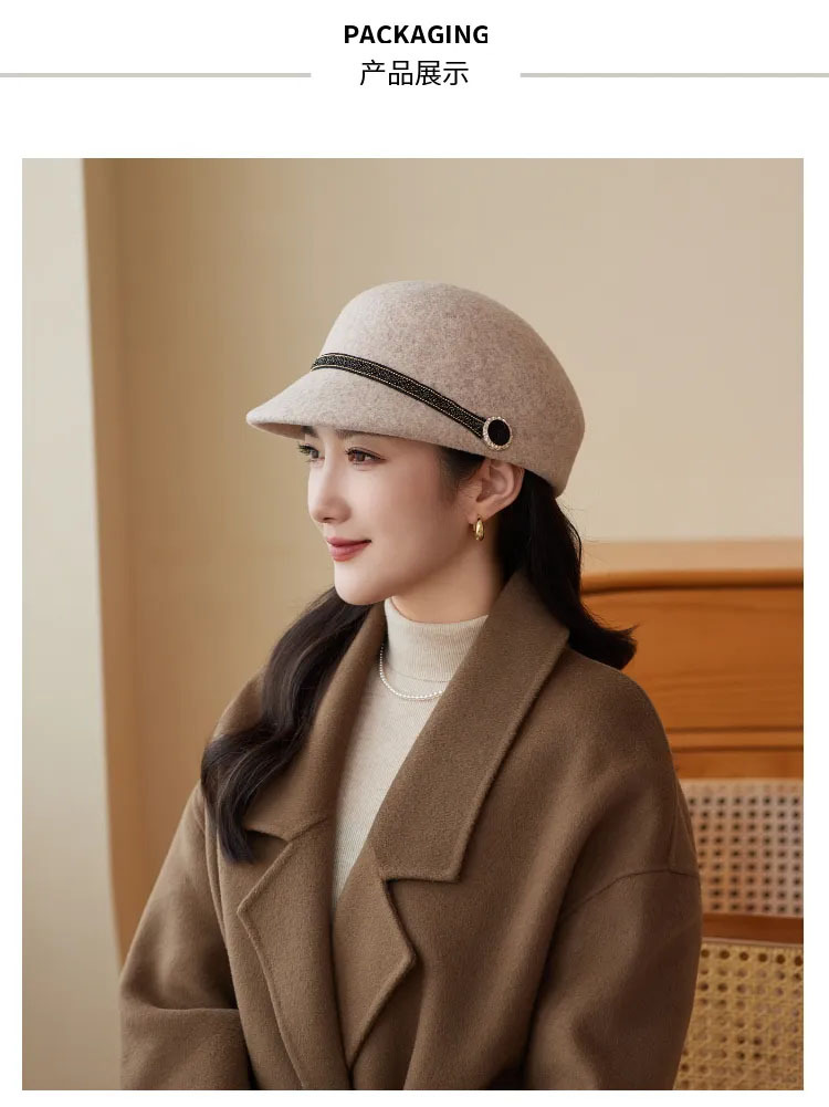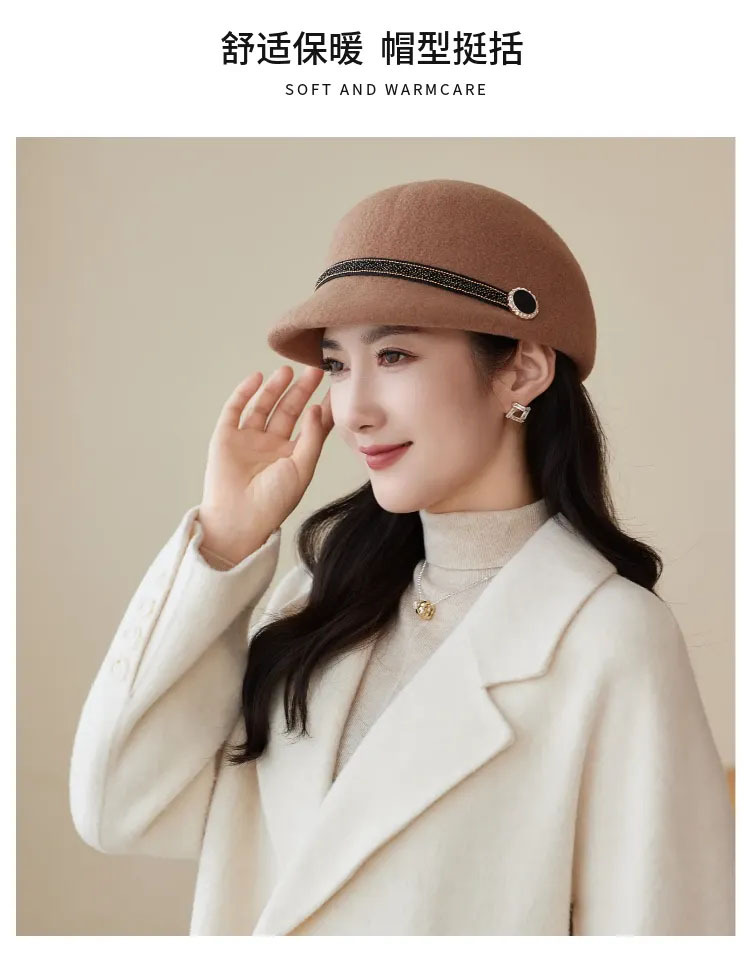 新款帽子女羊毛秋冬季复古减龄马术帽显脸小鸭舌帽户外出游百搭潮