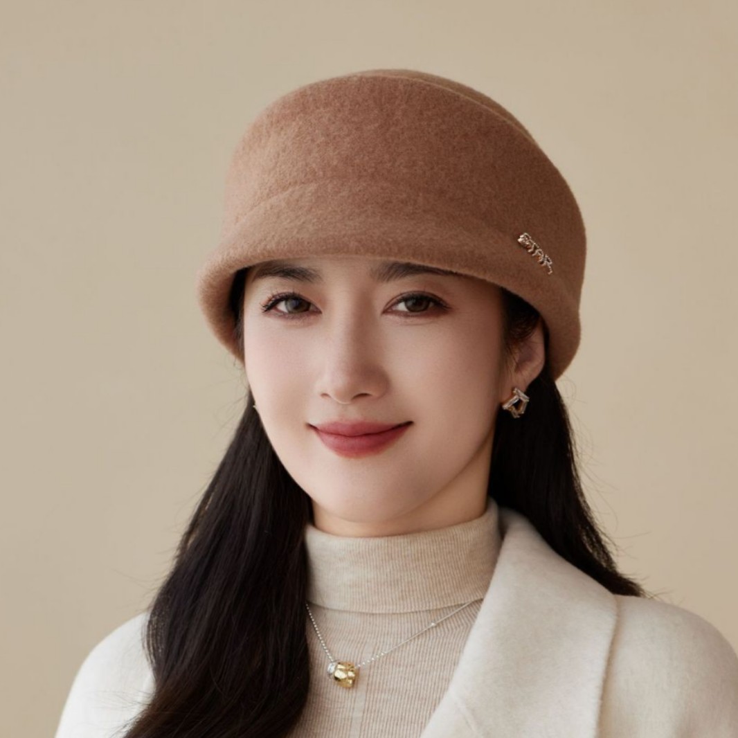 帽子女秋冬时尚优雅百搭渔夫帽户外出游韩版气质盆帽羊毛混纺保暖