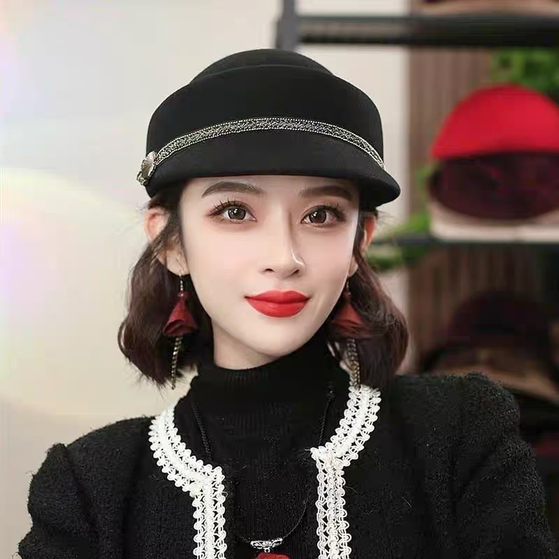 新款羊毛呢帽子秋冬天新款女士赫本风礼帽法式优雅复古渔夫帽盆帽
