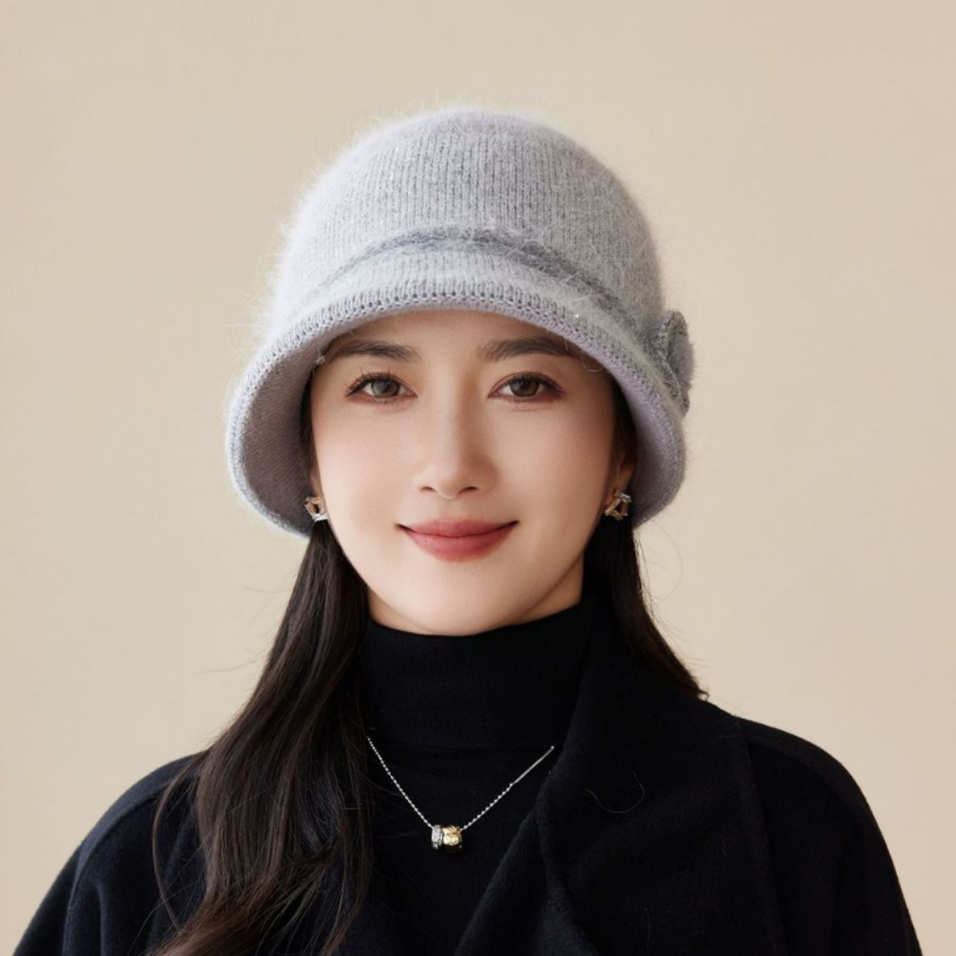 新款中老年女士兔毛针织盆帽秋冬季户外骑行保暖护耳毛线帽子批发