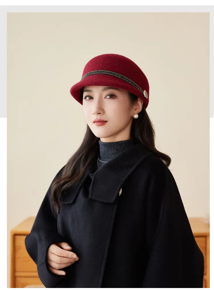 渔夫帽秋冬季女士羊毛保暖法式显脸小盆帽复古名媛气质优雅礼帽子