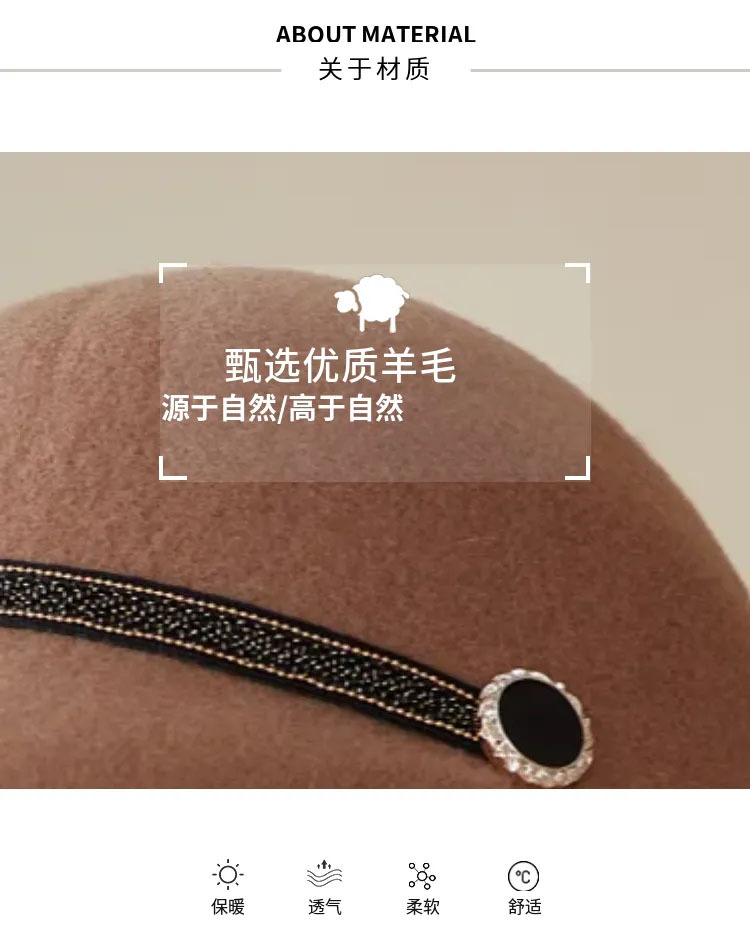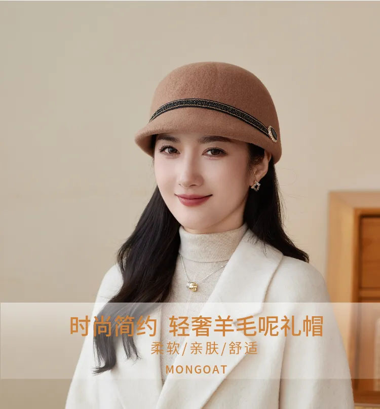 羊毛礼帽日系秋冬季气质百搭减龄优雅毛呢马术帽户外出游显脸小潮
