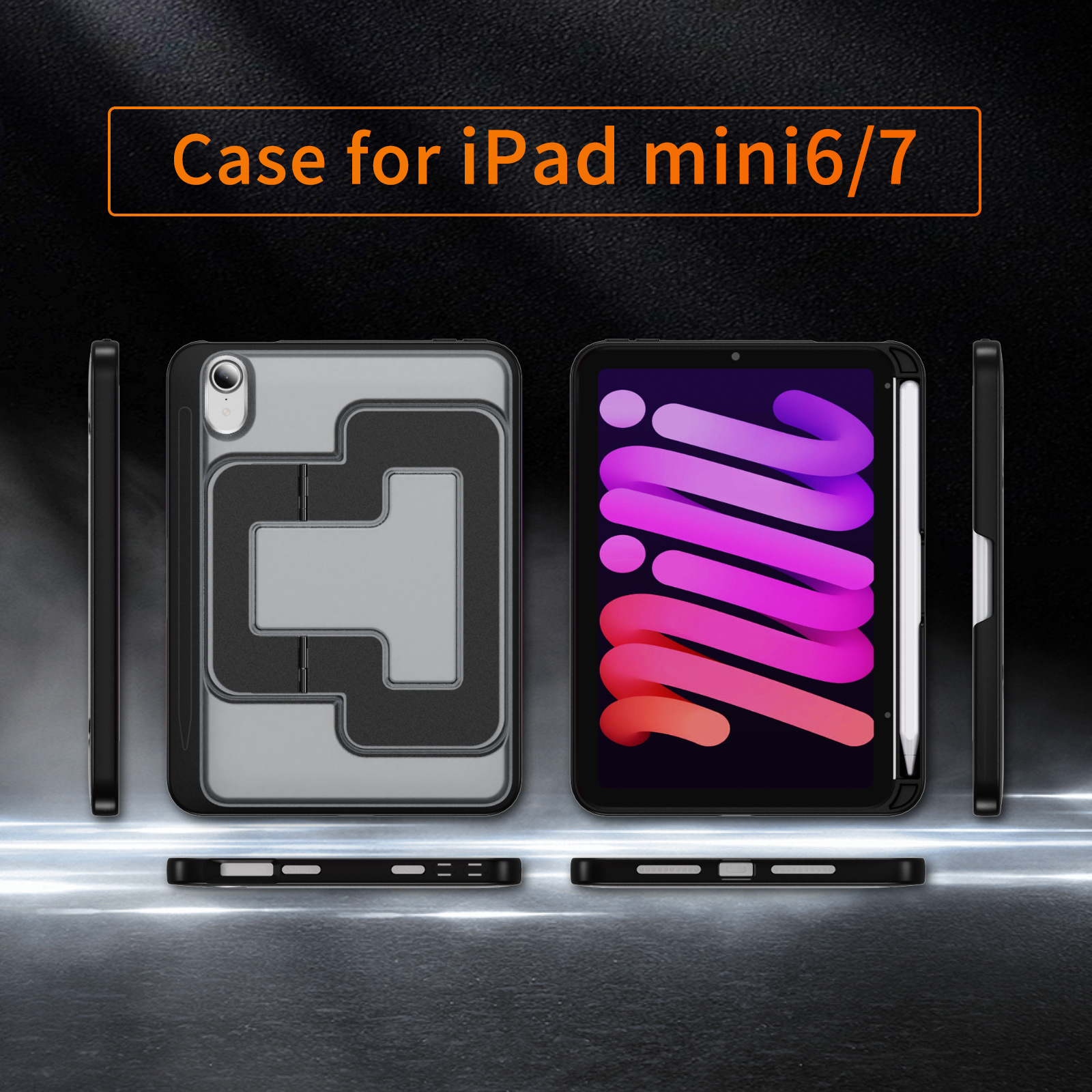 适用苹果ipad mini6-7防摔保护套旋转支架源头厂家平板保护套商务