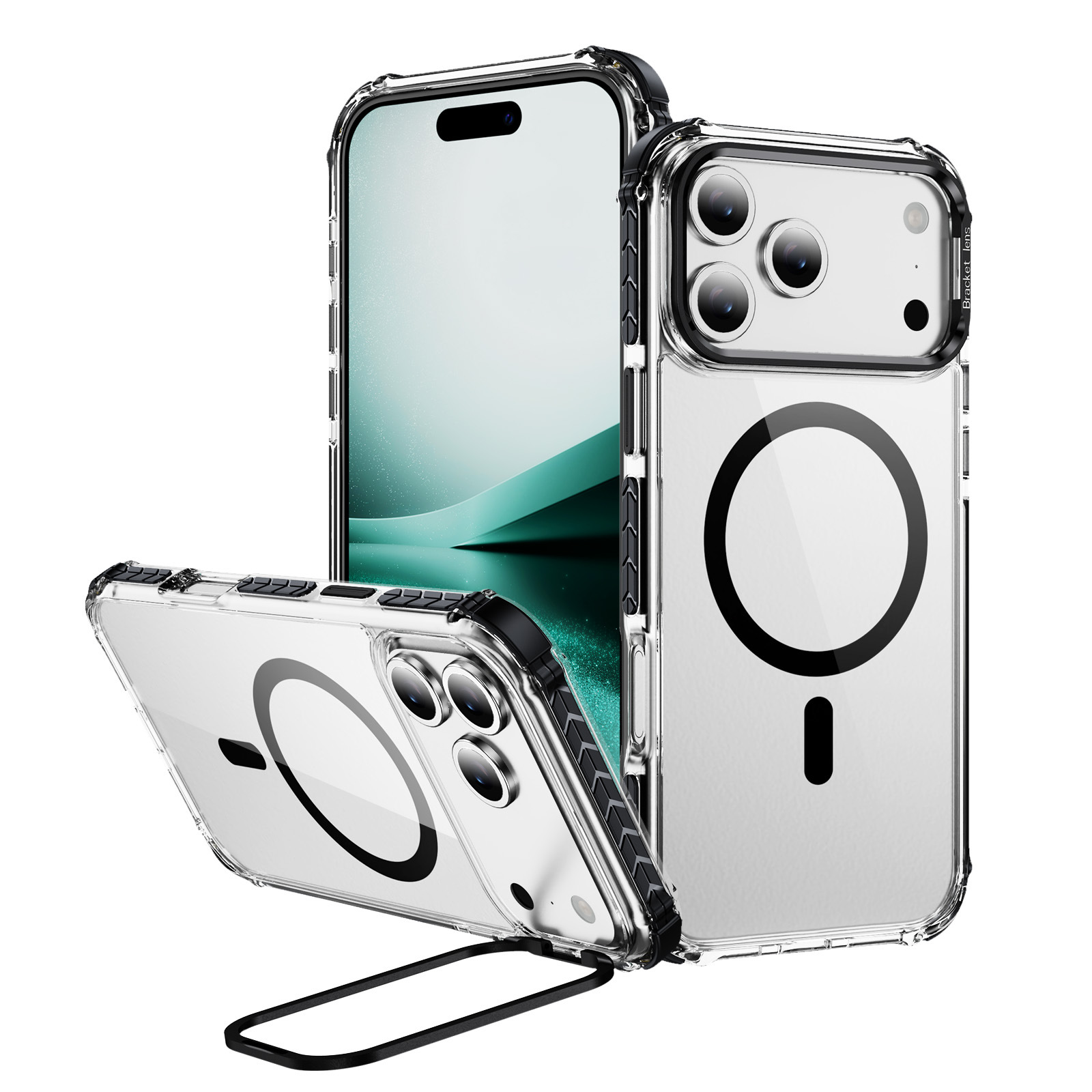 ゴーグル高透過率磁気リングレンズホルダー携帯電話ケース IP17promax ヨーロッパとアメリカの Amazon PC + TPU 透明落下防止