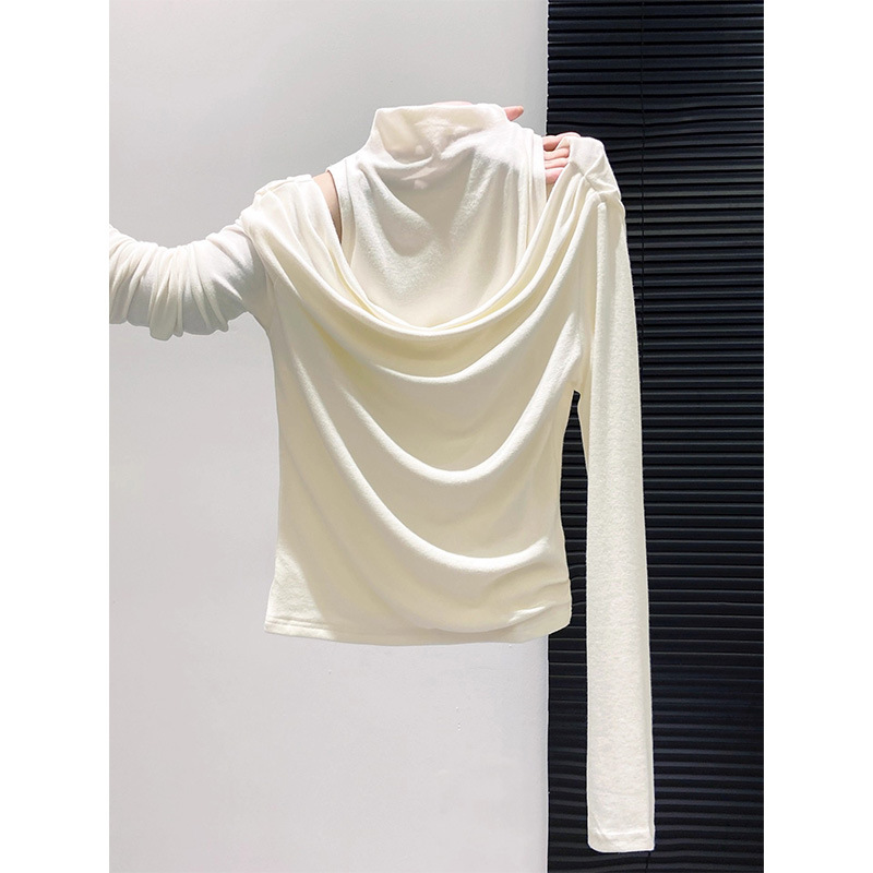 白色半高领假两件长袖T恤女早秋季2025新款设计感修身打底衫上衣