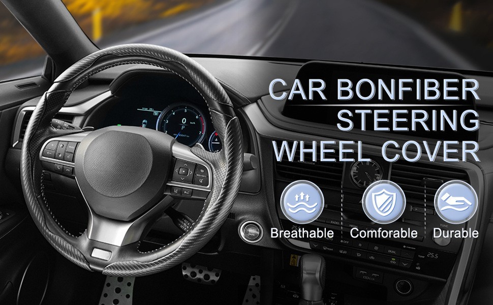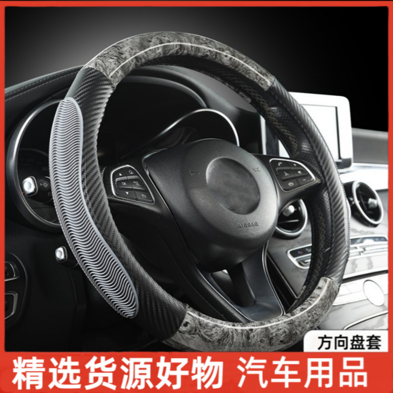 HuiKu 外国貿易車のステアリングホイールカバースプライシングカーボンファイバー耐摩耗性レザーハンドルバーカバー四季ユニバーサル車保護カバー