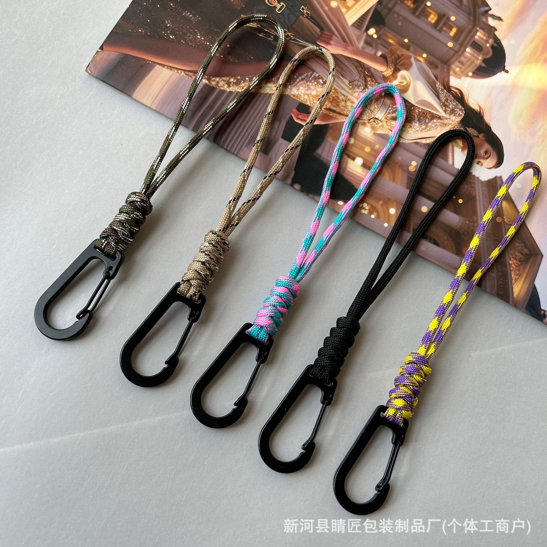户外野营手工编织钥匙扣挂绳防丢防掉手腕绳登山扣挂钩钥匙链绳