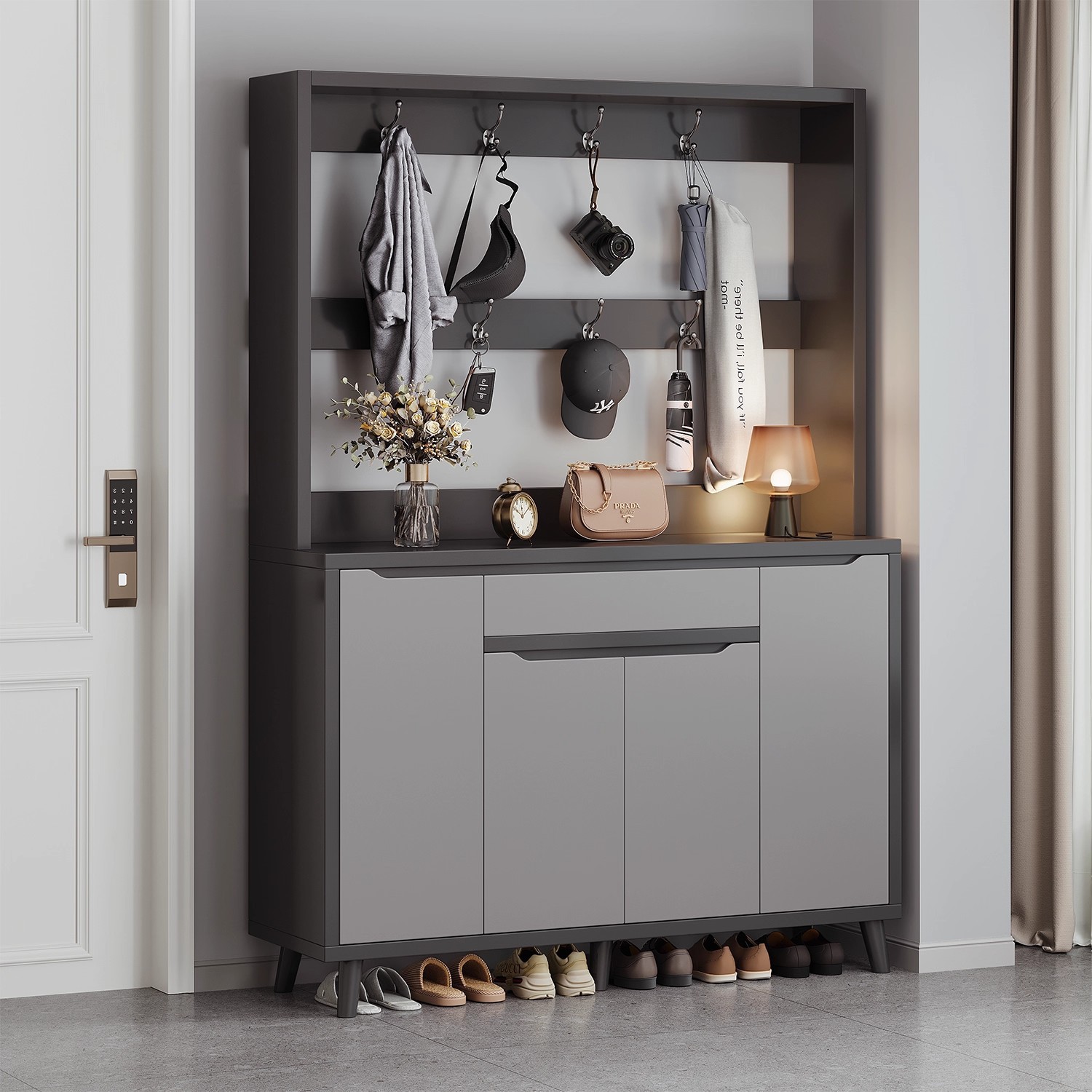 鞋柜家用门口室内玄关柜入户储物柜大容量置物柜带挂衣架一体鞋架