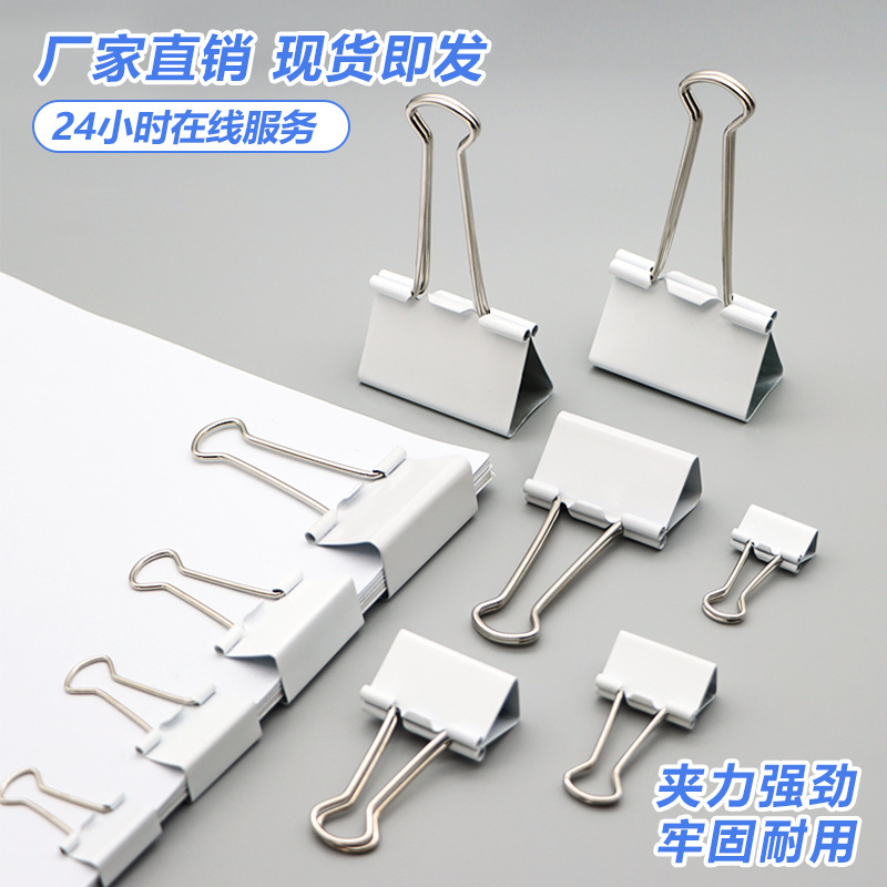 现货供应美具优质白色长尾夹金属票夹办公试卷文具夹子燕尾夹
