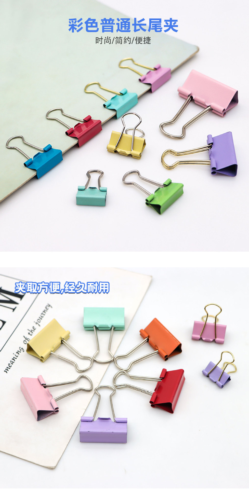 工厂定制logo长尾夹彩色燕尾夹创意金属票据夹资料夹子试卷铁夹