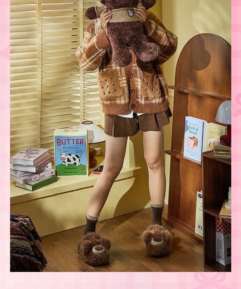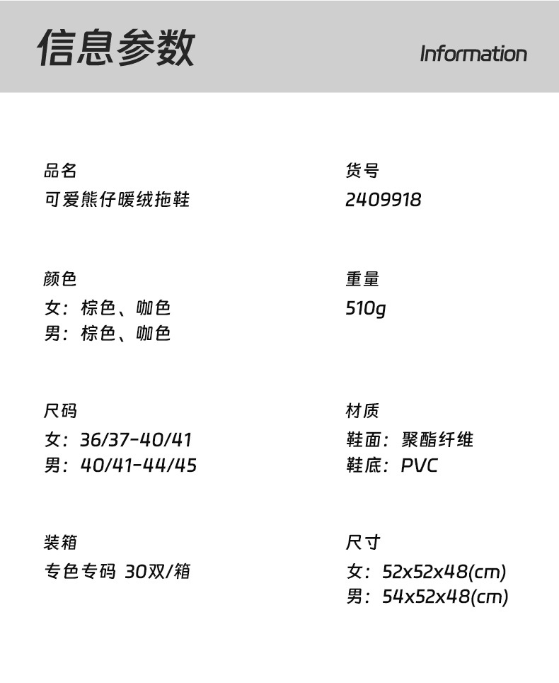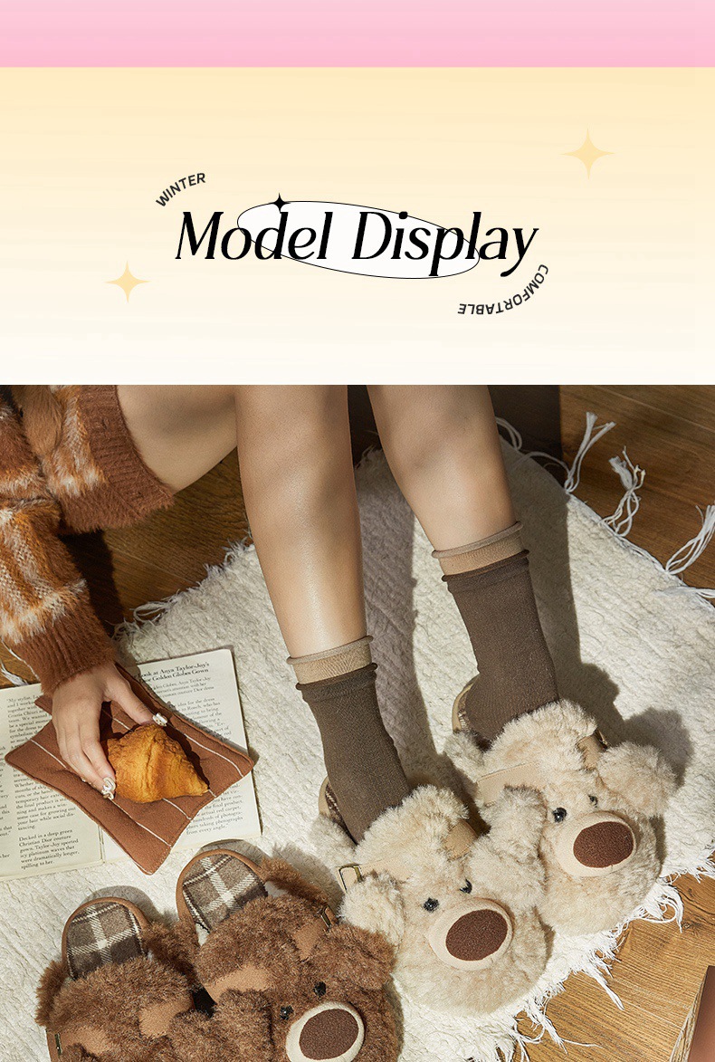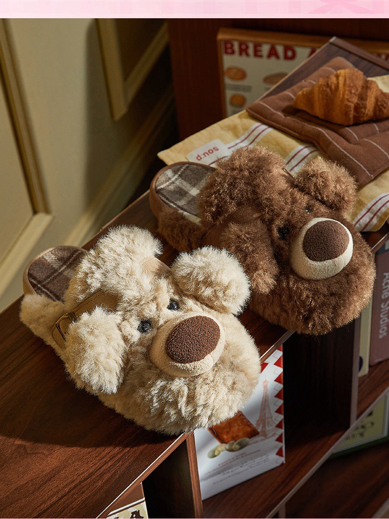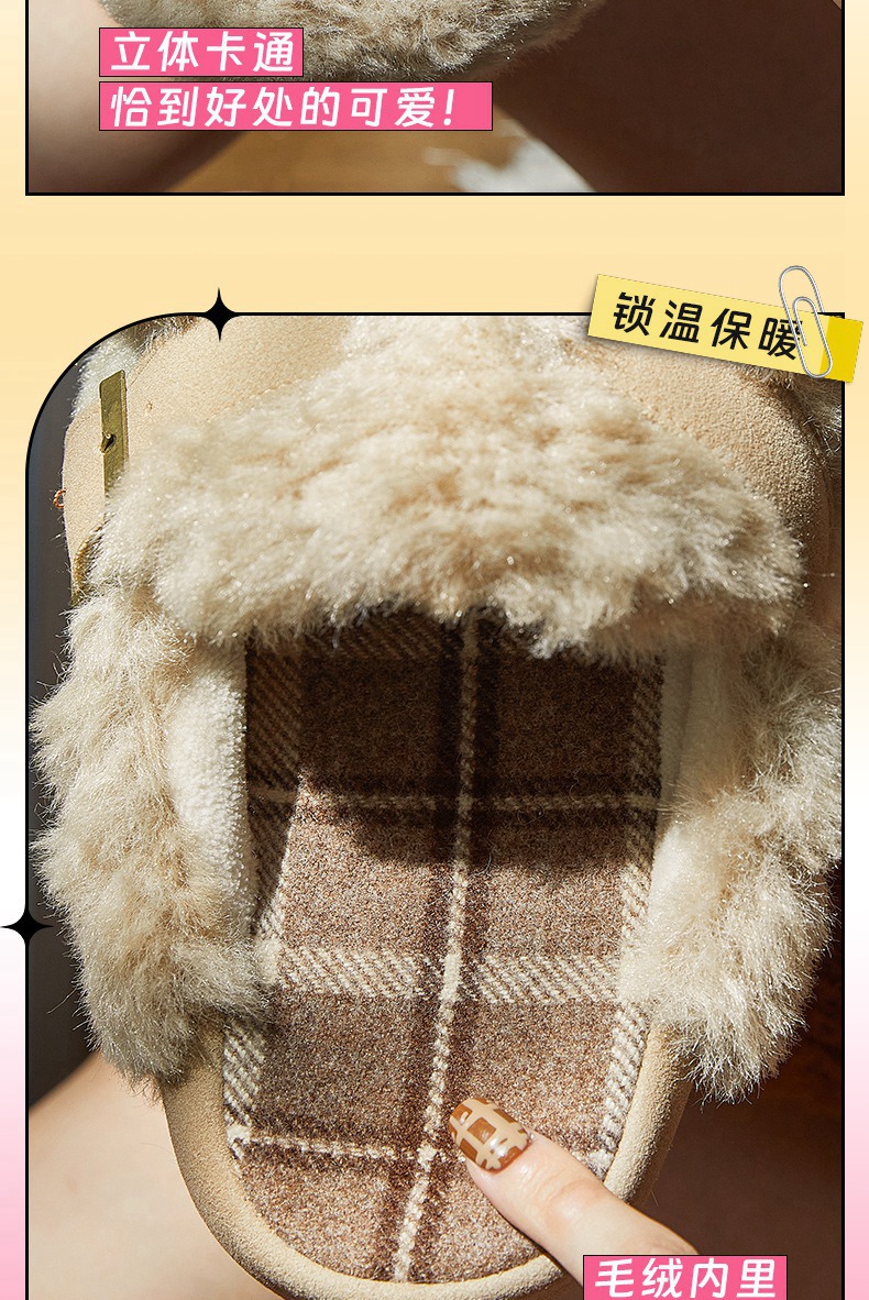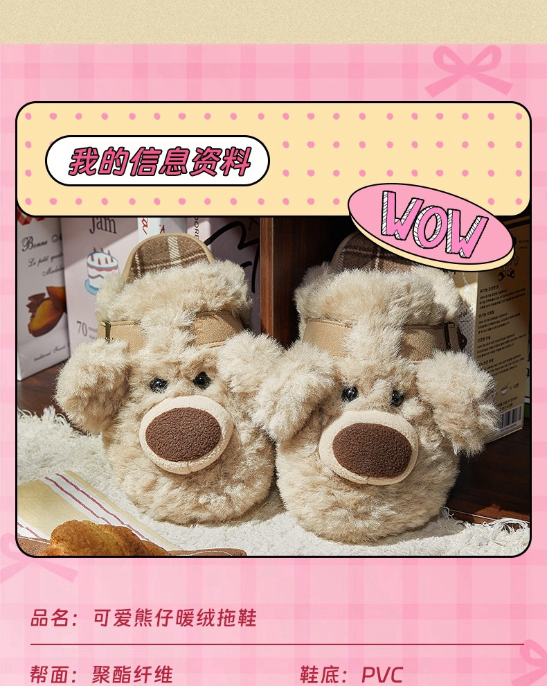 蚂蚁之恋秋冬新品卡通可爱熊仔暖绒开口拖居家外穿情侣款舒适拖鞋