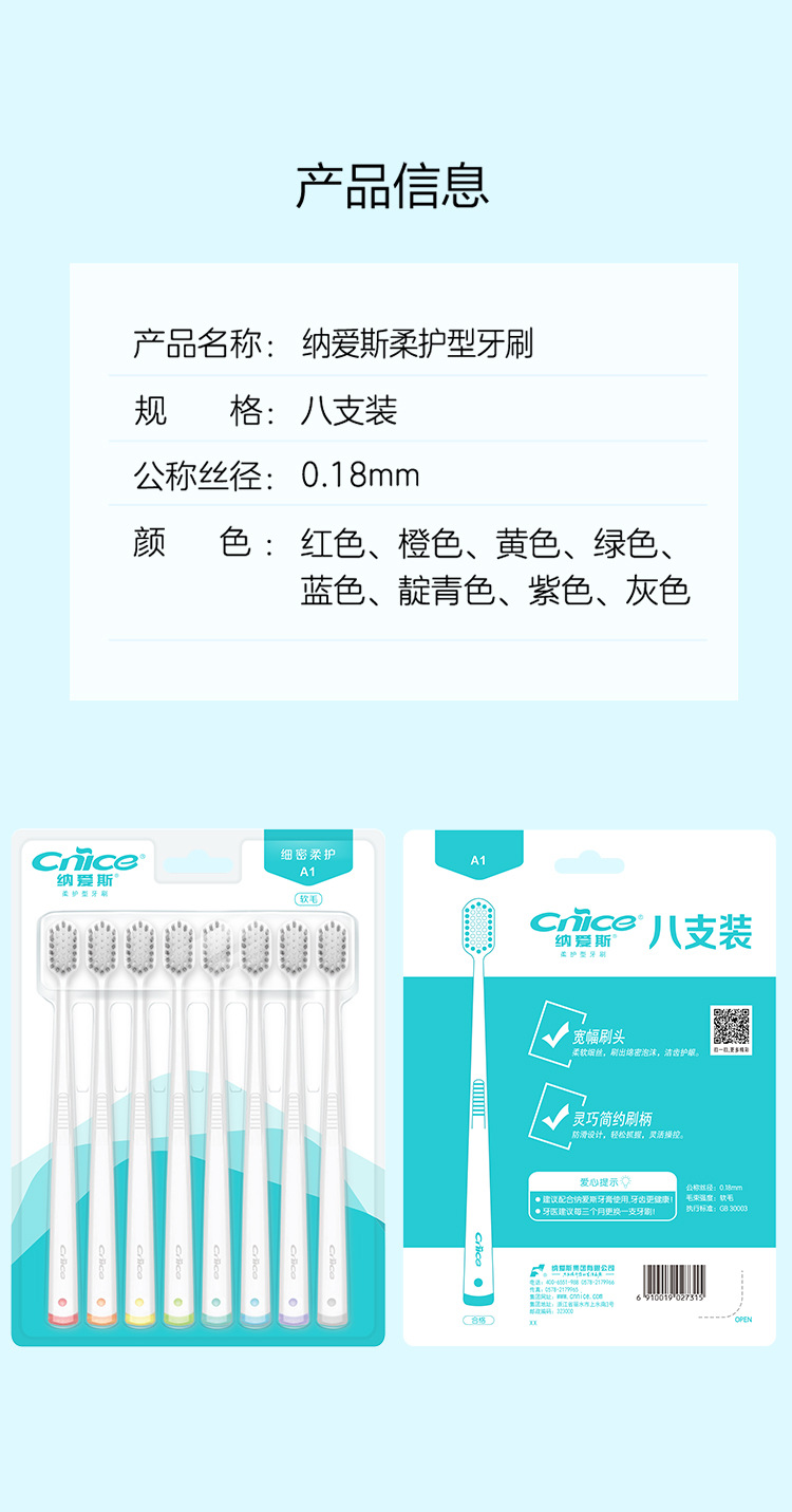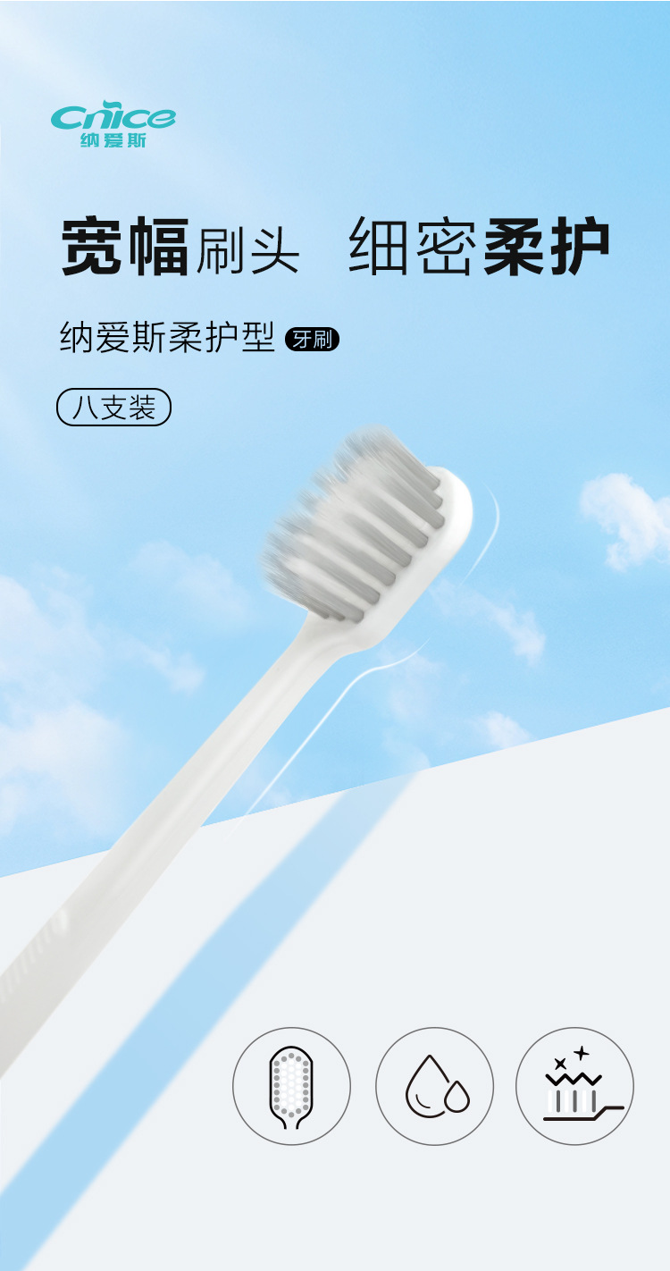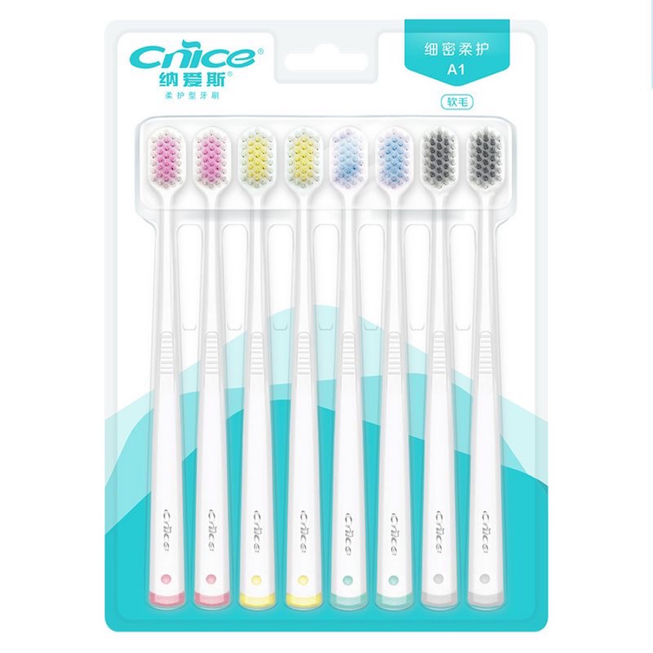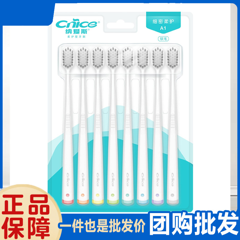 纳爱斯牙刷A1软毛小头宽头时尚牙刷细齿洁宽薄家庭装口腔清洁8支