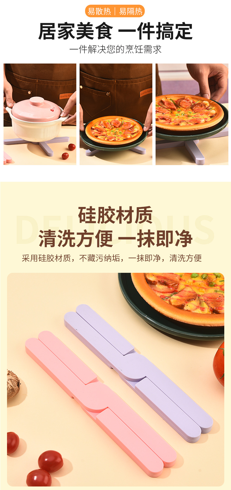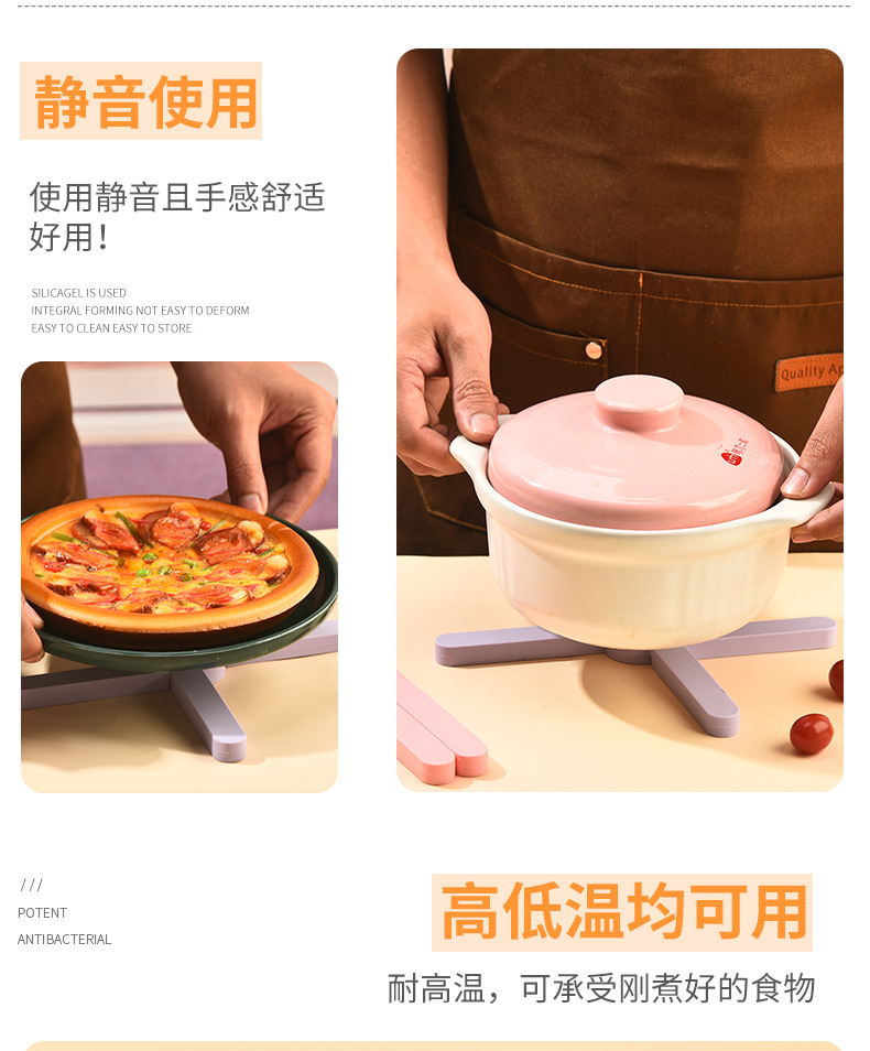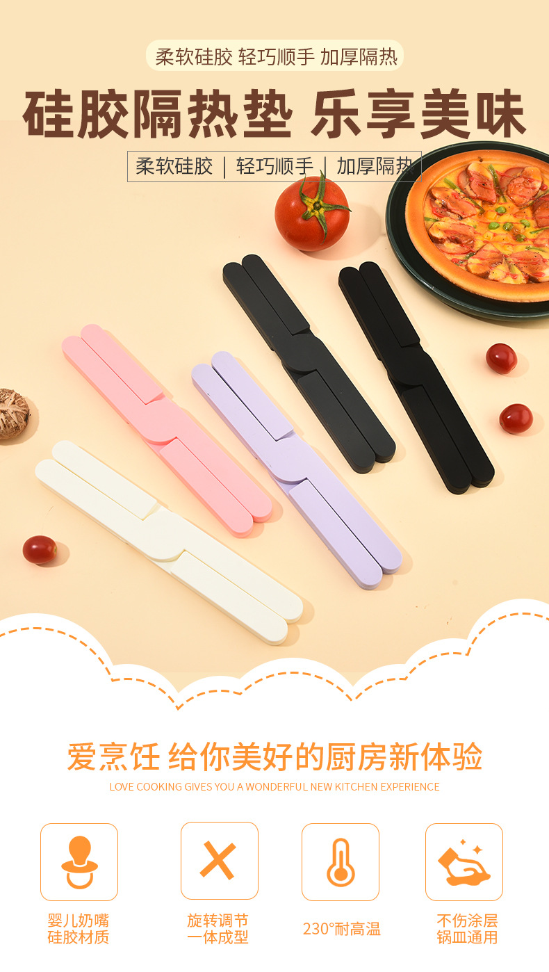 X创意折叠餐具隔热垫家用厨房锅碗杯碟防烫耐高温硅胶防滑餐桌