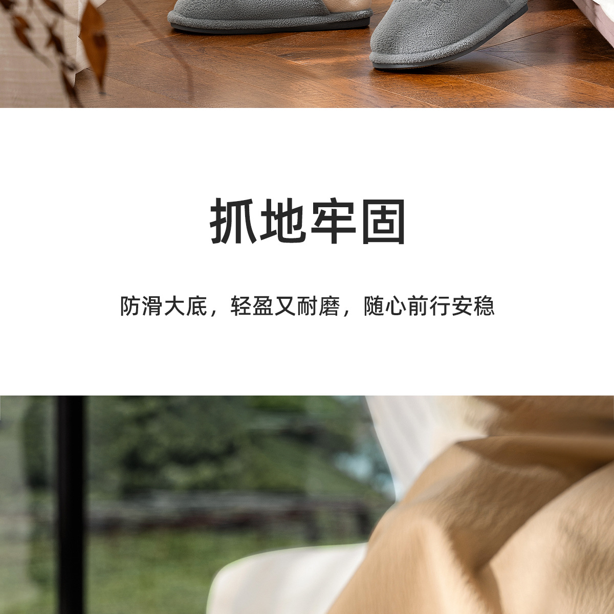 日式静音地板棉拖鞋女士秋冬季防滑防臭室内家居毛绒抗菌拖鞋男款