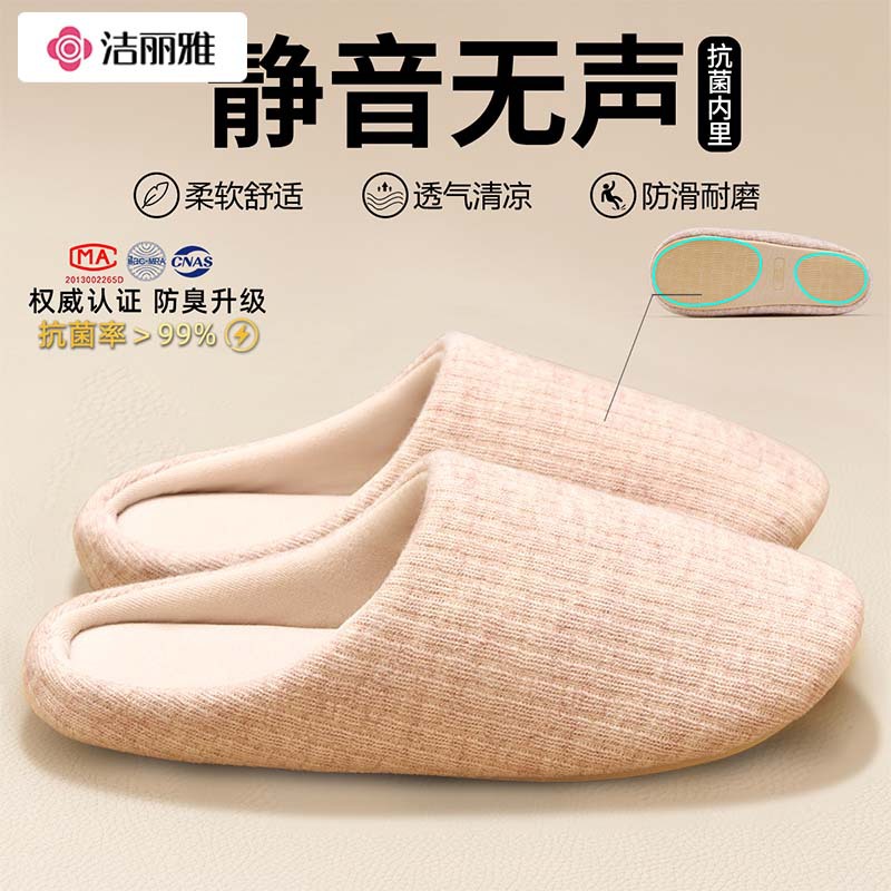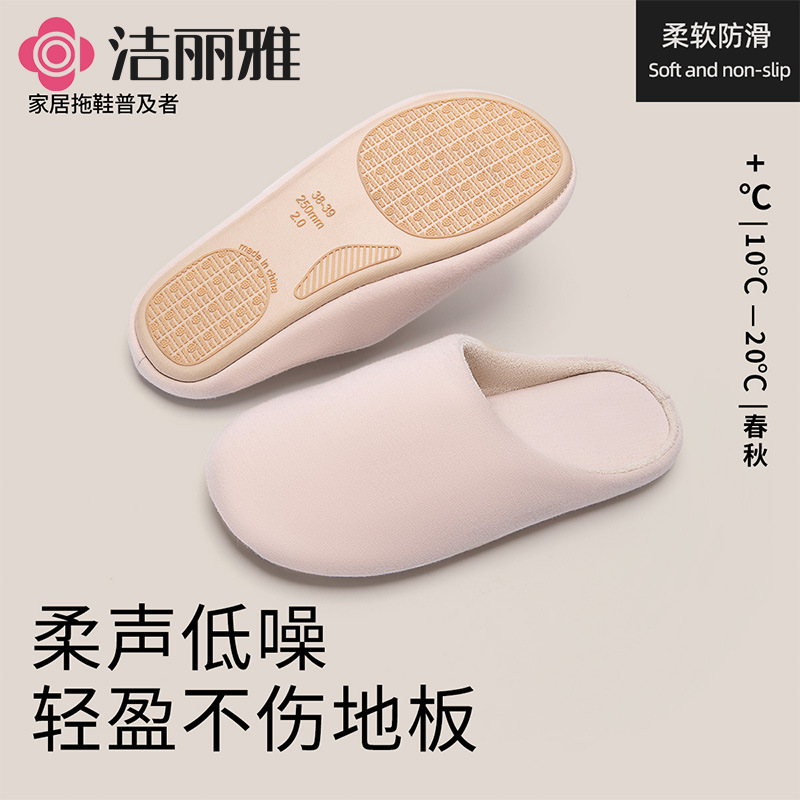 洁丽雅静音软底地板拖女2025新款春秋室内家居防滑四季棉拖鞋男士