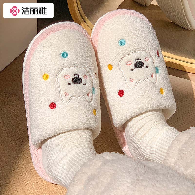洁丽雅棉拖鞋女秋冬款学生宿舍室内可爱小狗保暖防滑情侣毛绒拖男