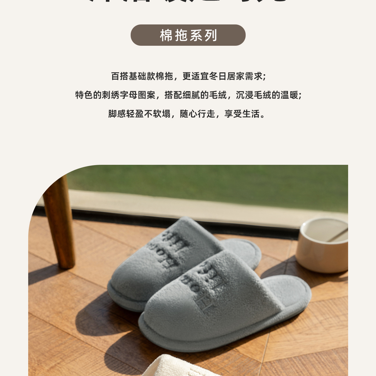 居家棉拖女2025秋冬季抗菌防臭情侣拖鞋室内防滑简约毛绒棉拖鞋男