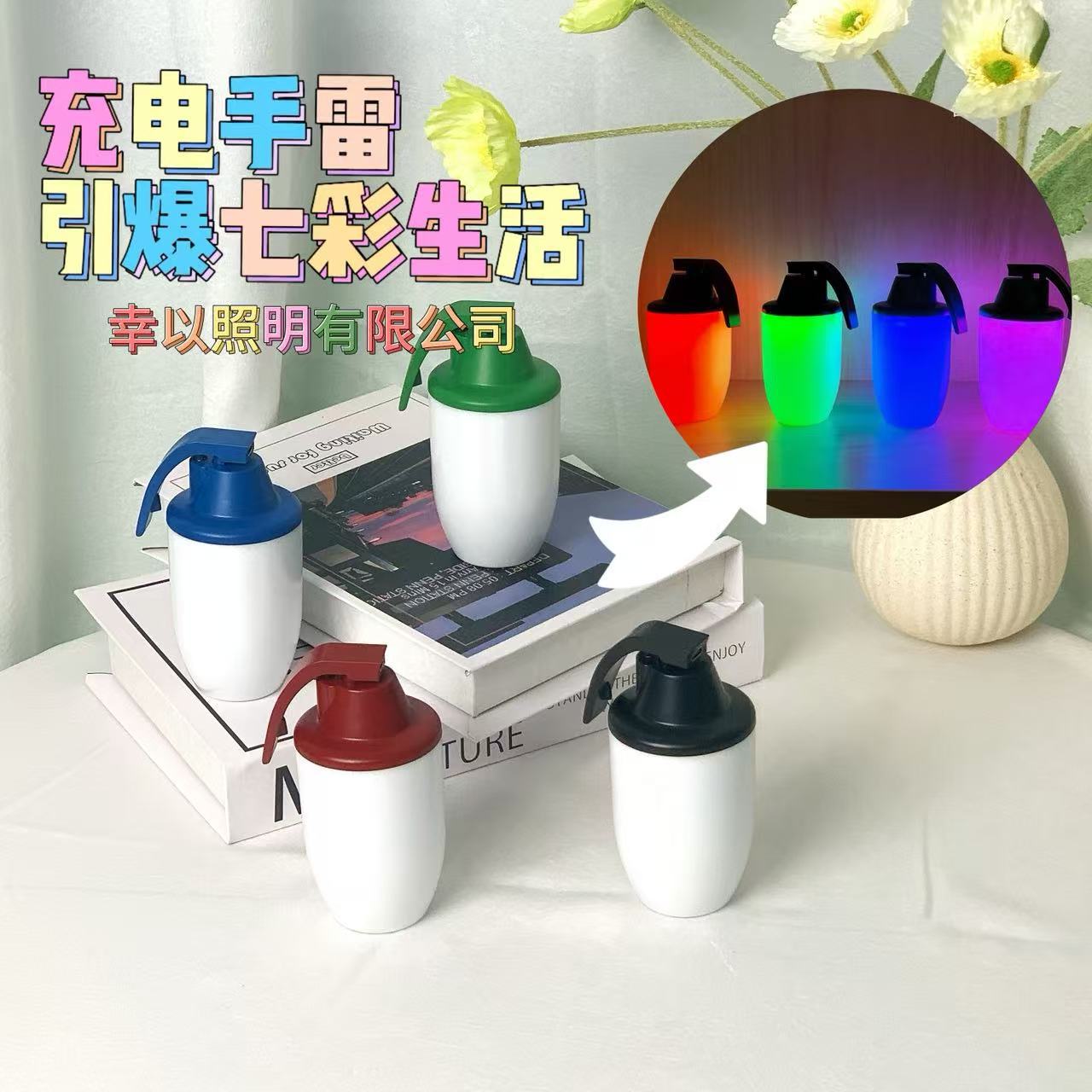 国境を越えた創造的な新製品、手榴弾型の七色の雰囲気ランプ、子供用発光玩具、オリジナルの高級充電式ホームテーブルランプ
