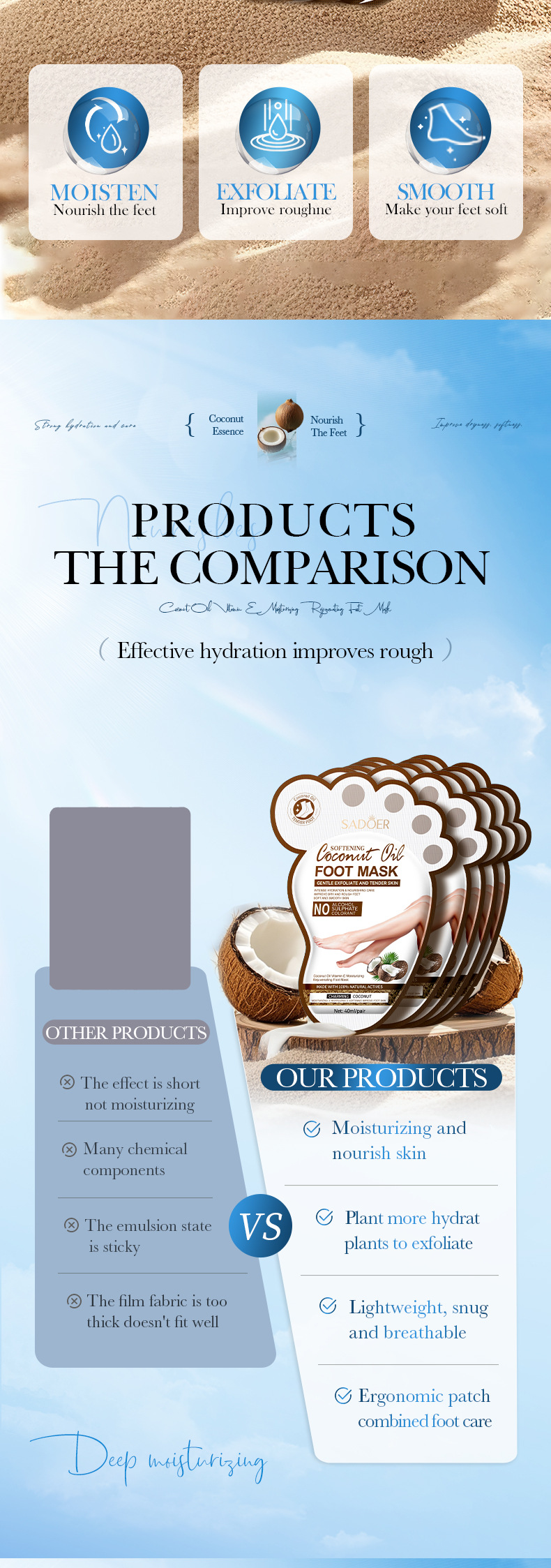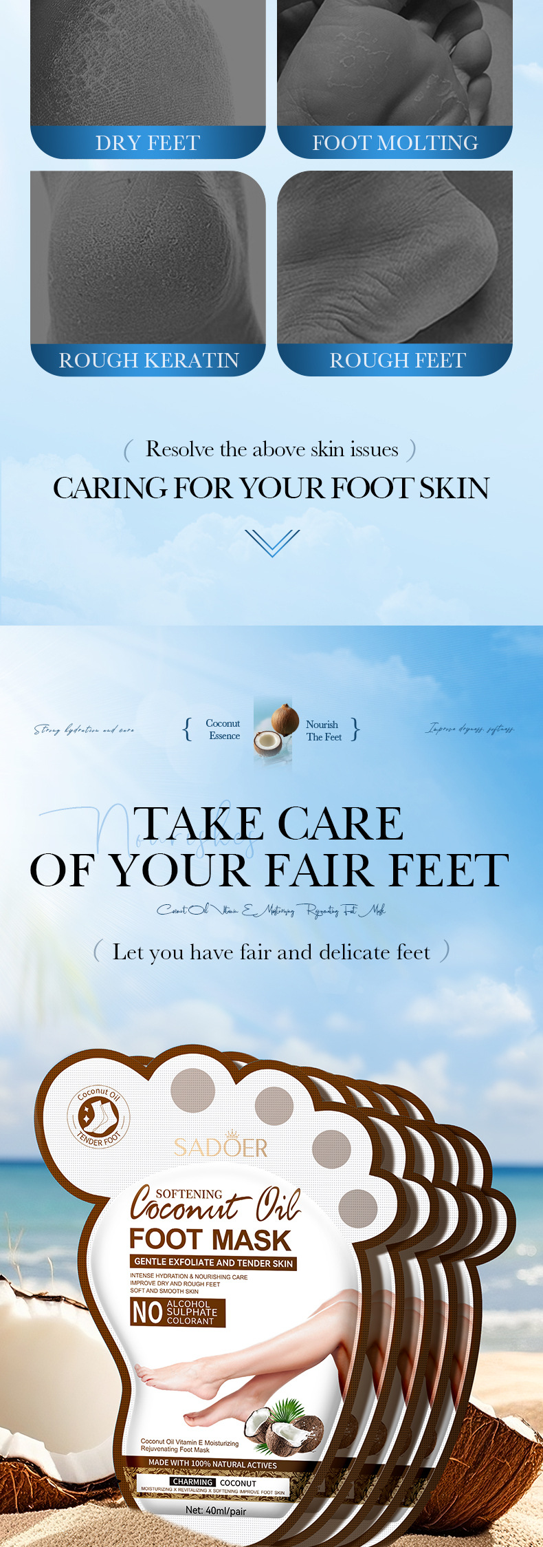 跨境现货椰油足膜 SADOER维生素E滋润嫩肤秋冬季足膜外贸工厂直销