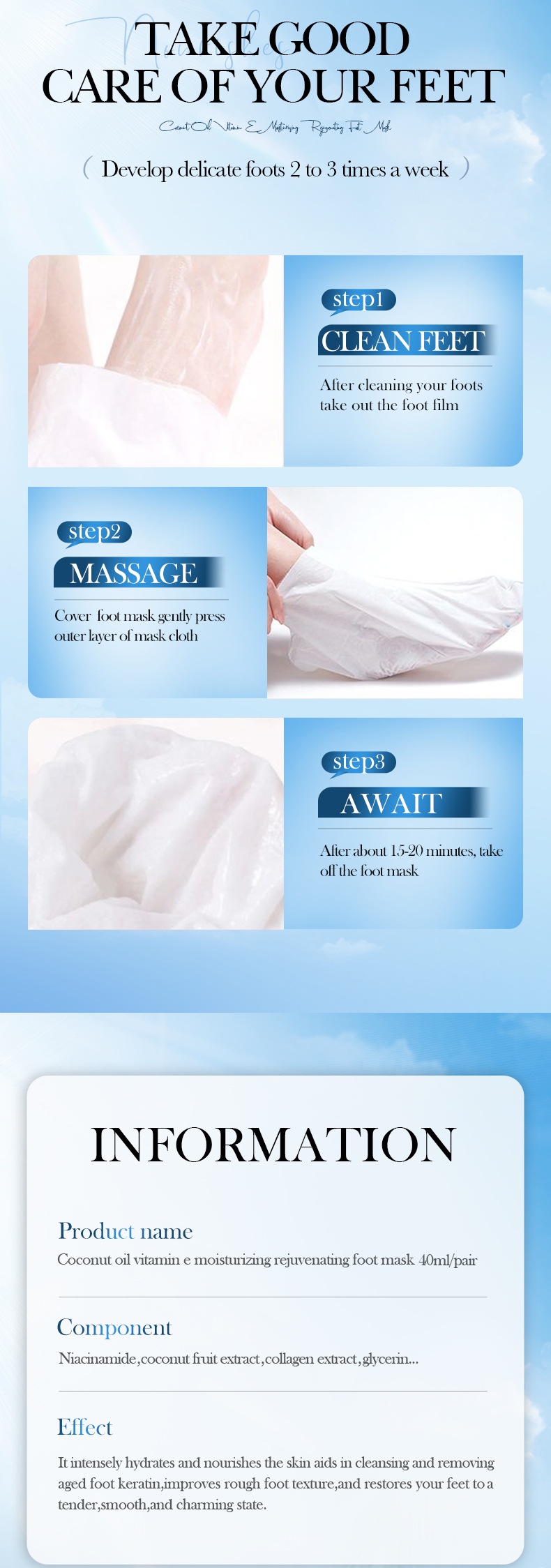 跨境椰油维生素E足膜40ml 秋冬季嫩肤足膜外贸护肤品批发