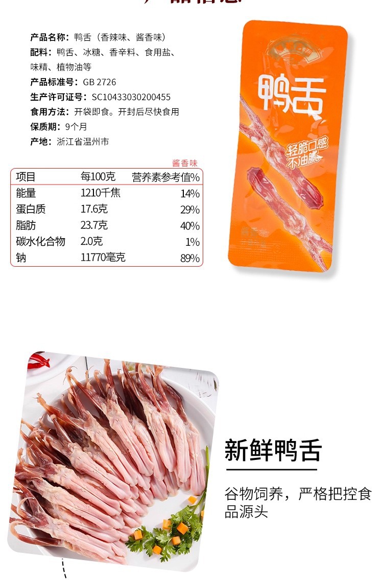 藤桥正品大鸭舌香辣酱香卤鸭舌卤味小吃温州特产鸭舌头零食酱香味
