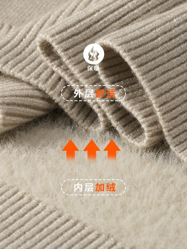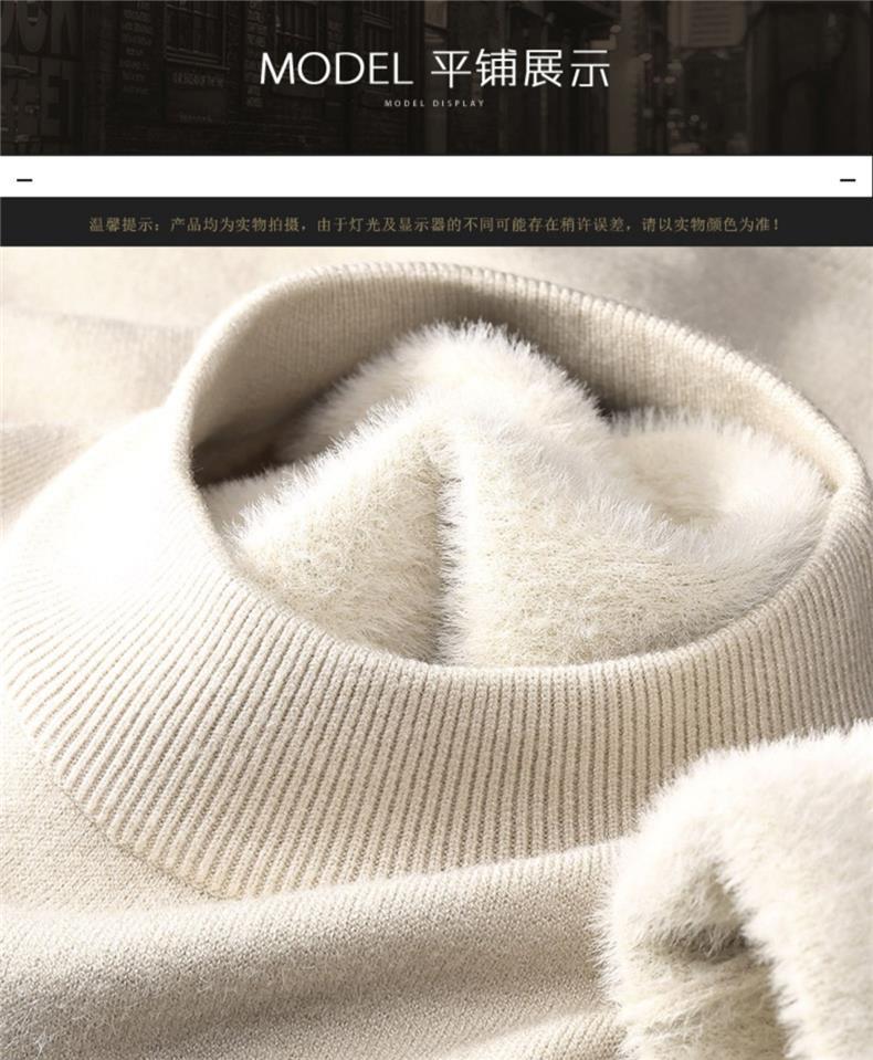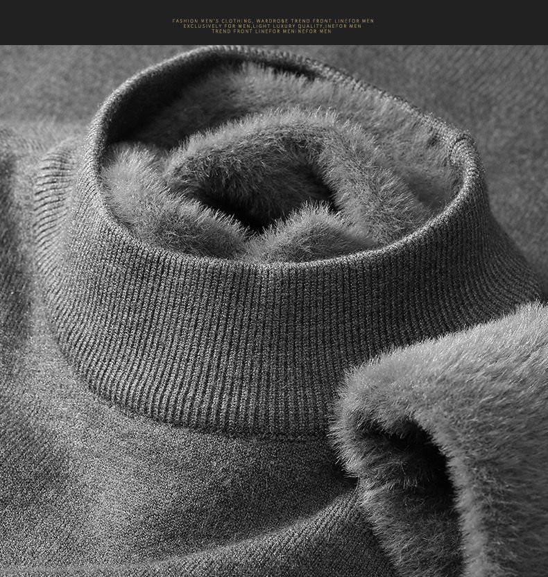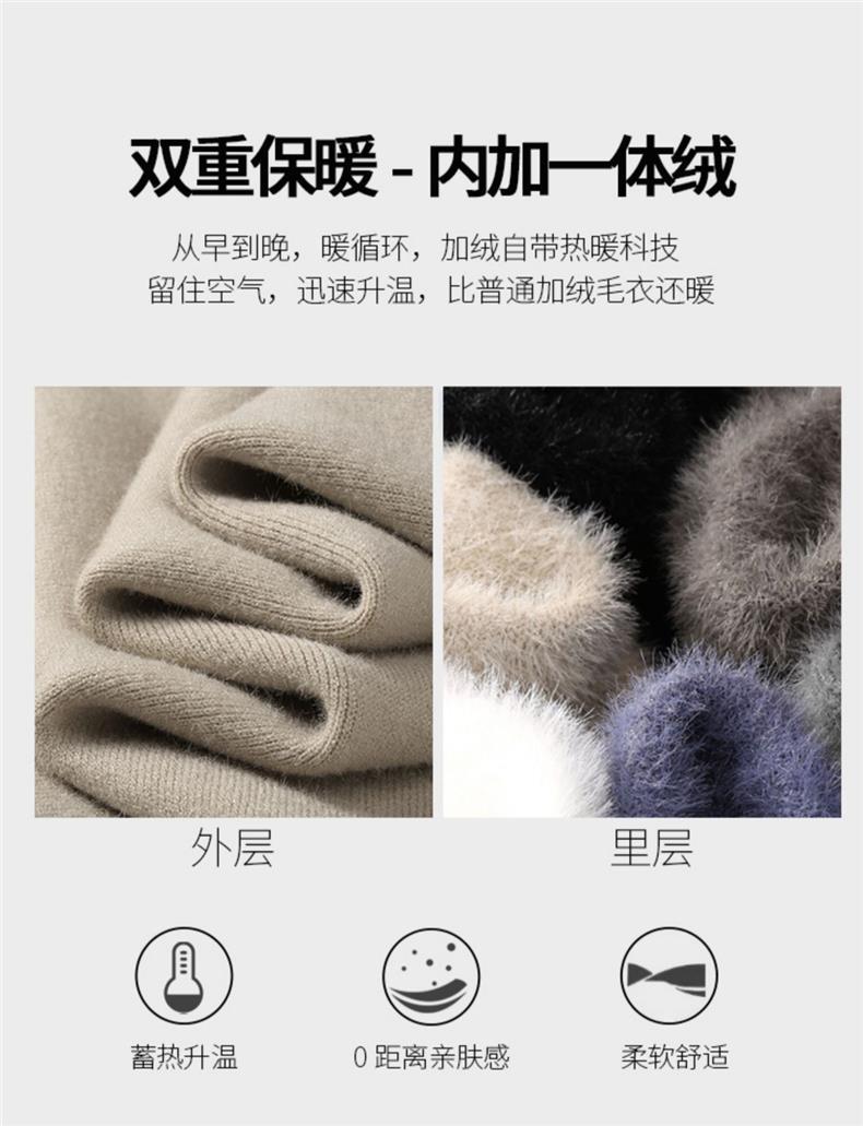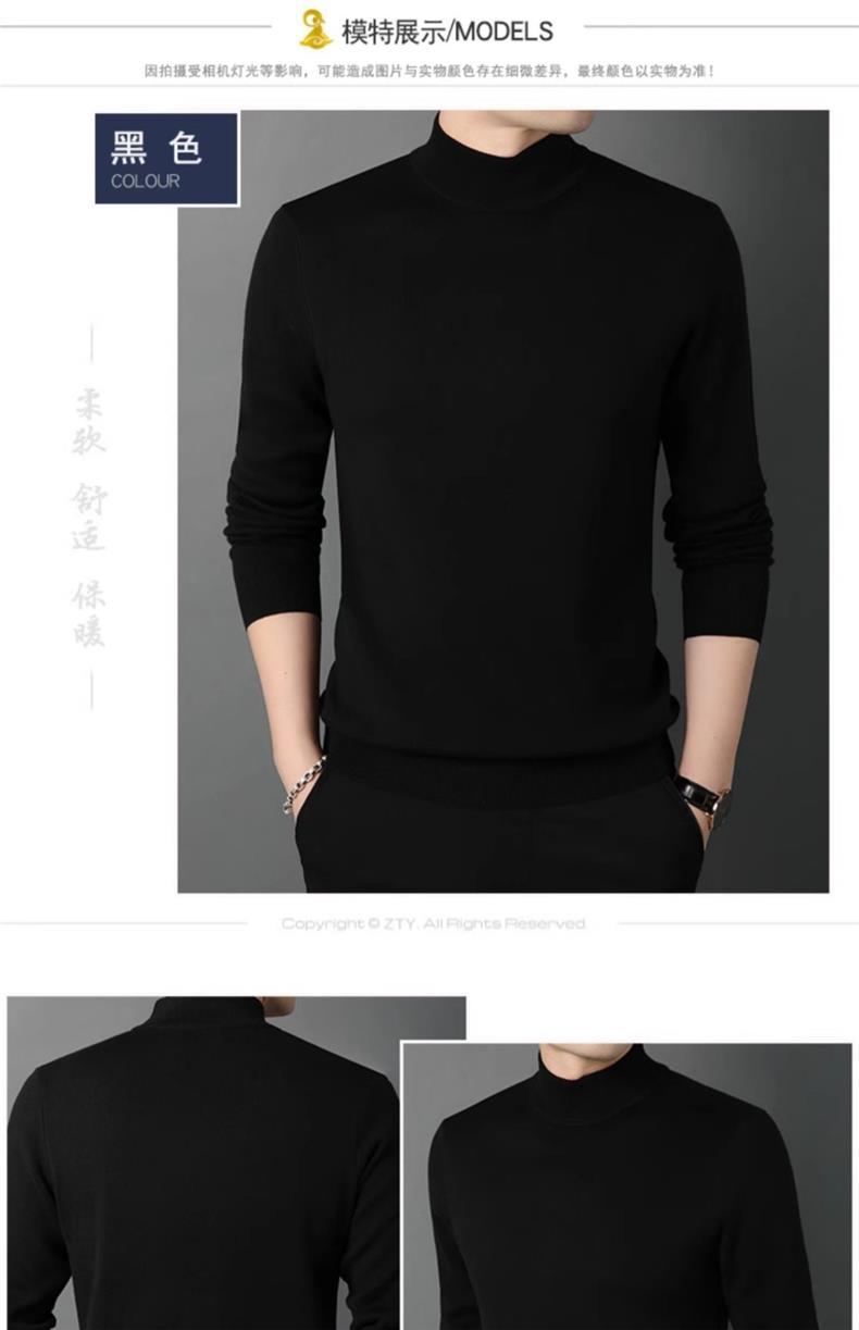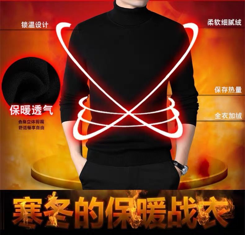 【价可谈】男士纯色一体绒加绒加厚毛衣保暖半高领针织打底衫批发