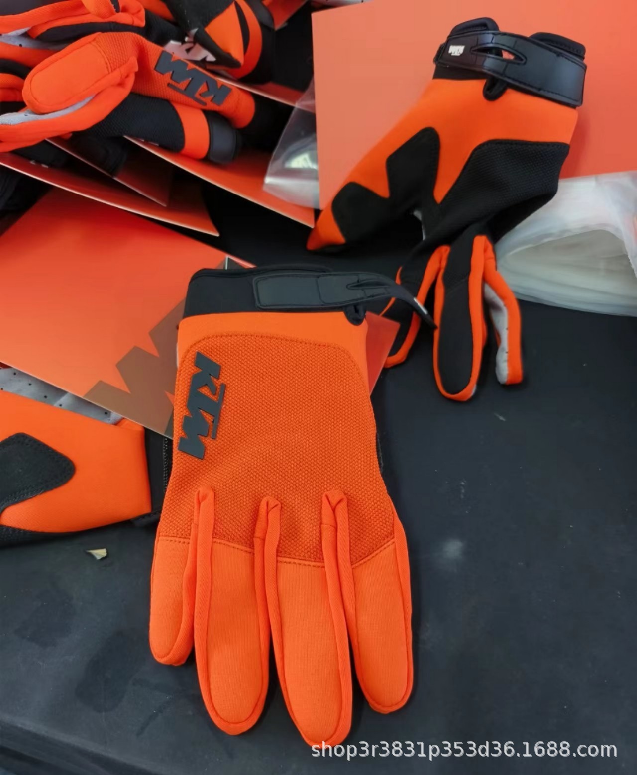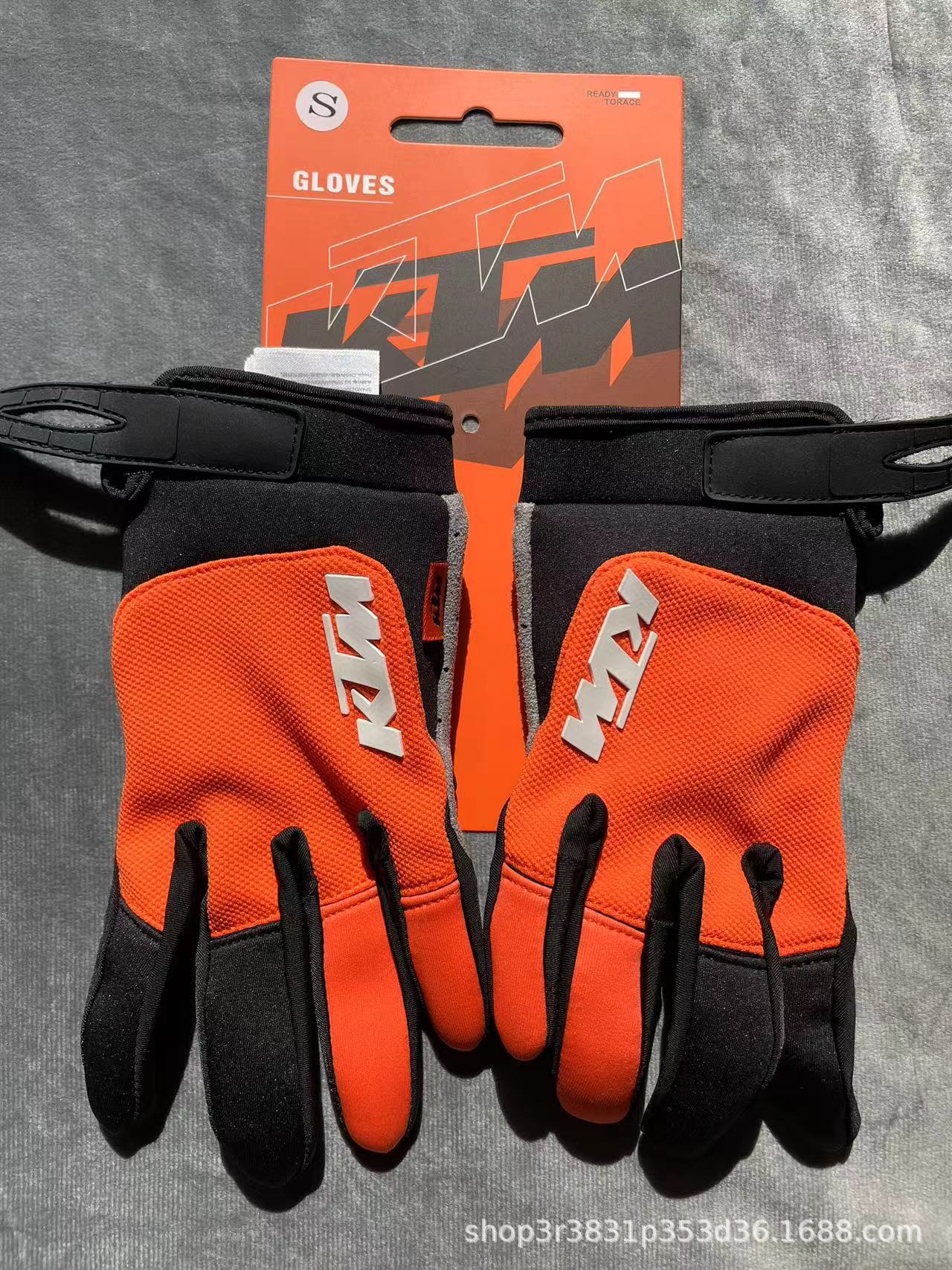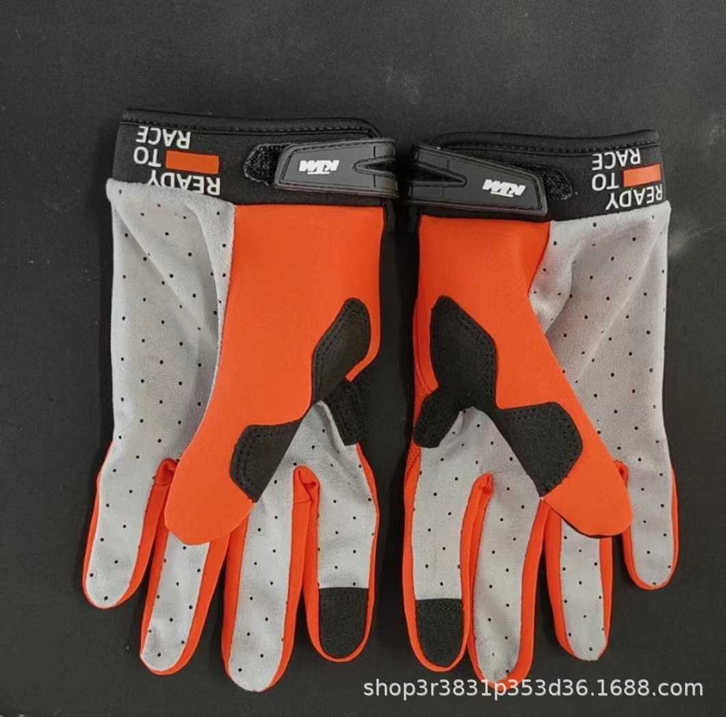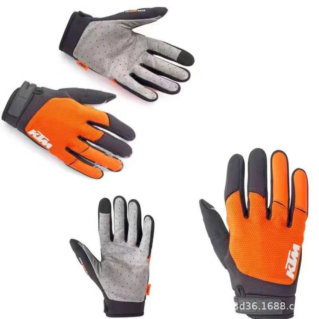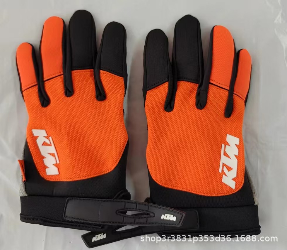 KTM橙色动力越野摩托车骑行手套可触屏防滑长指跨境亚马逊运动