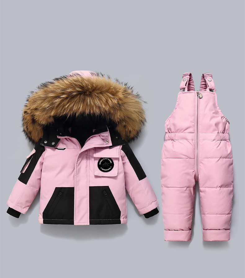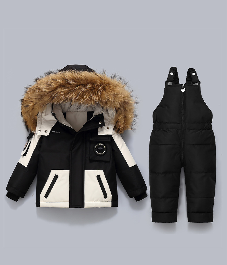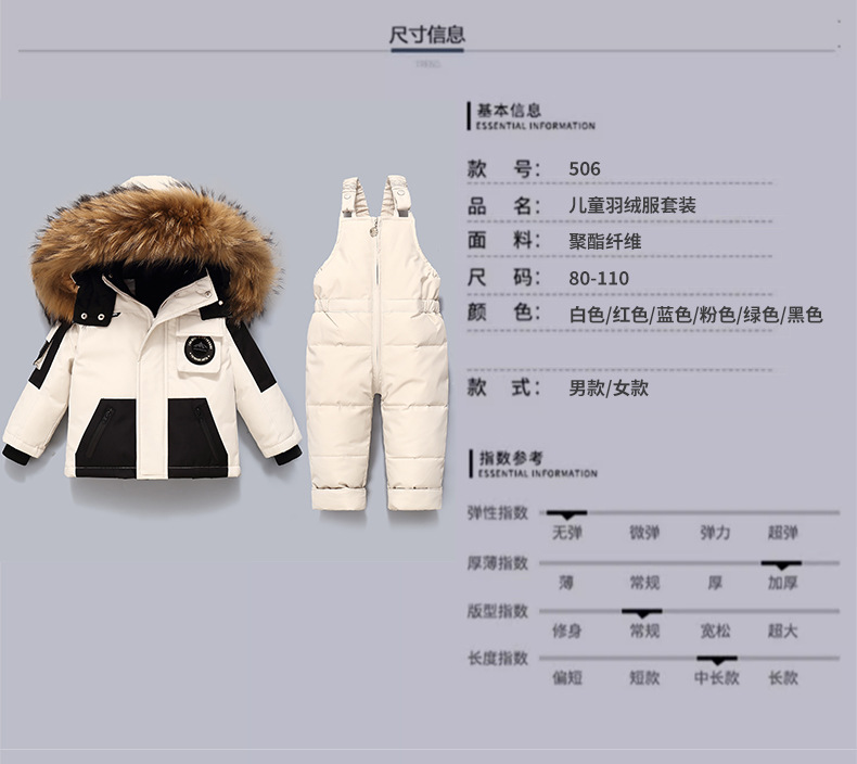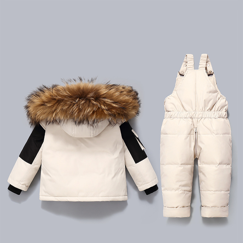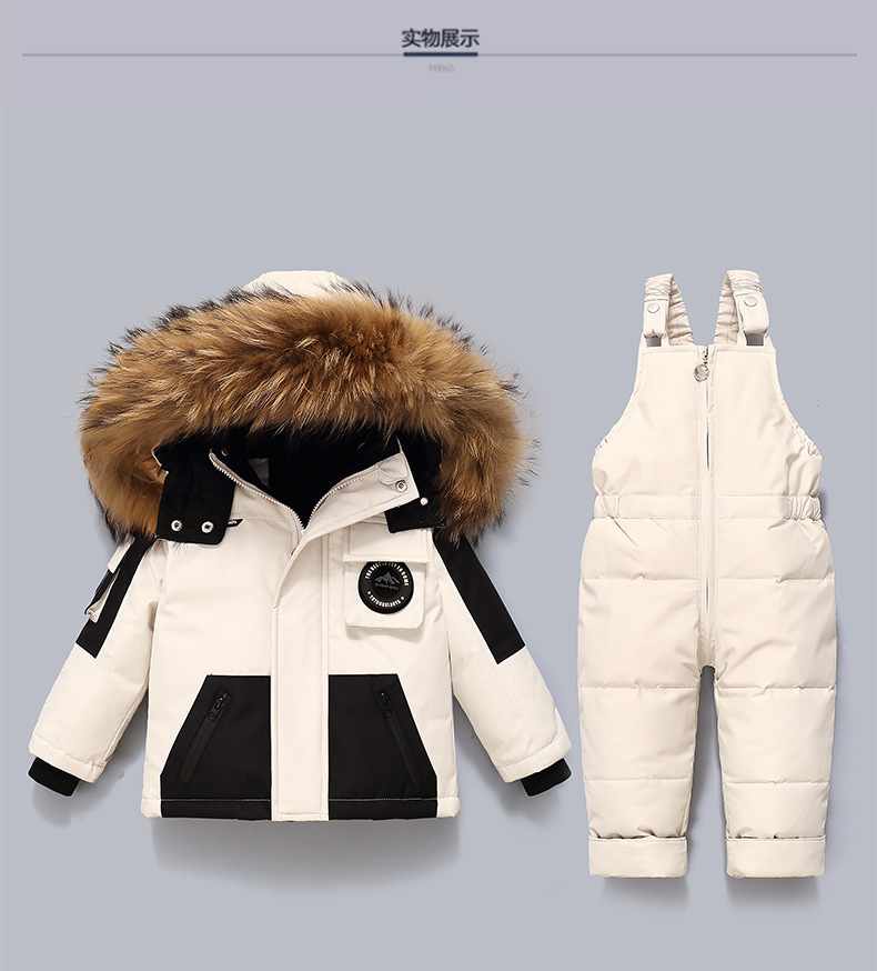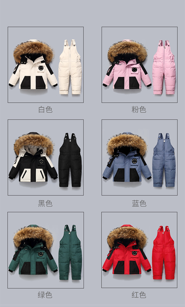 2025冬季跨境儿童羽绒服保暖套装宝宝加厚背带裤男女童冬装两件套