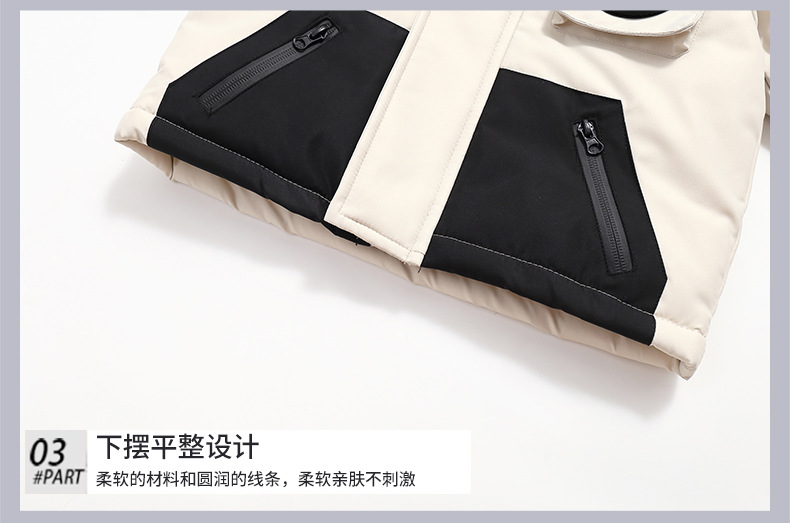 男の子用中長丈ダウンジャケット、2024年韓国風厚手おしゃれ子供服ダウンジャケット、ワークウェア風ジャケット