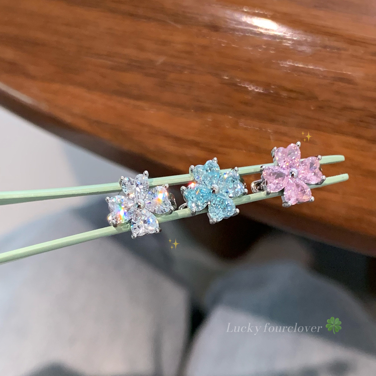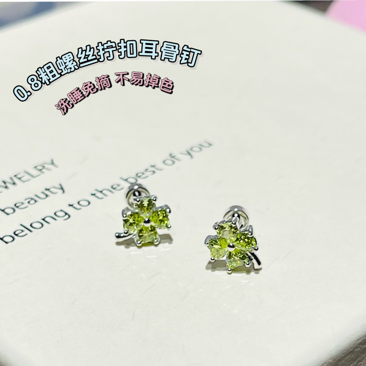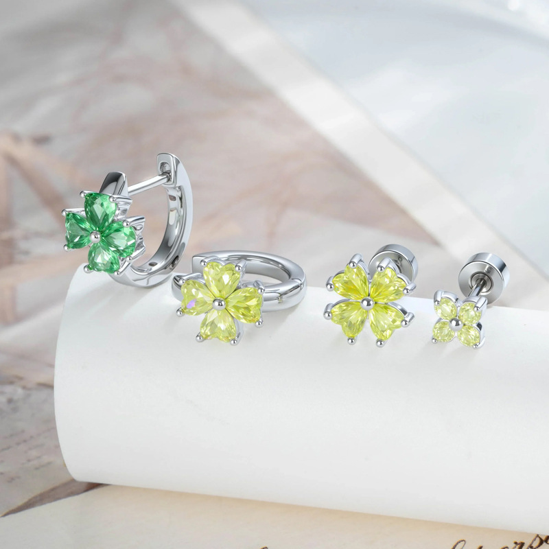 清新绿色四叶草锆石耳骨钉女轻奢小众个性设计小巧彩色耳饰批发