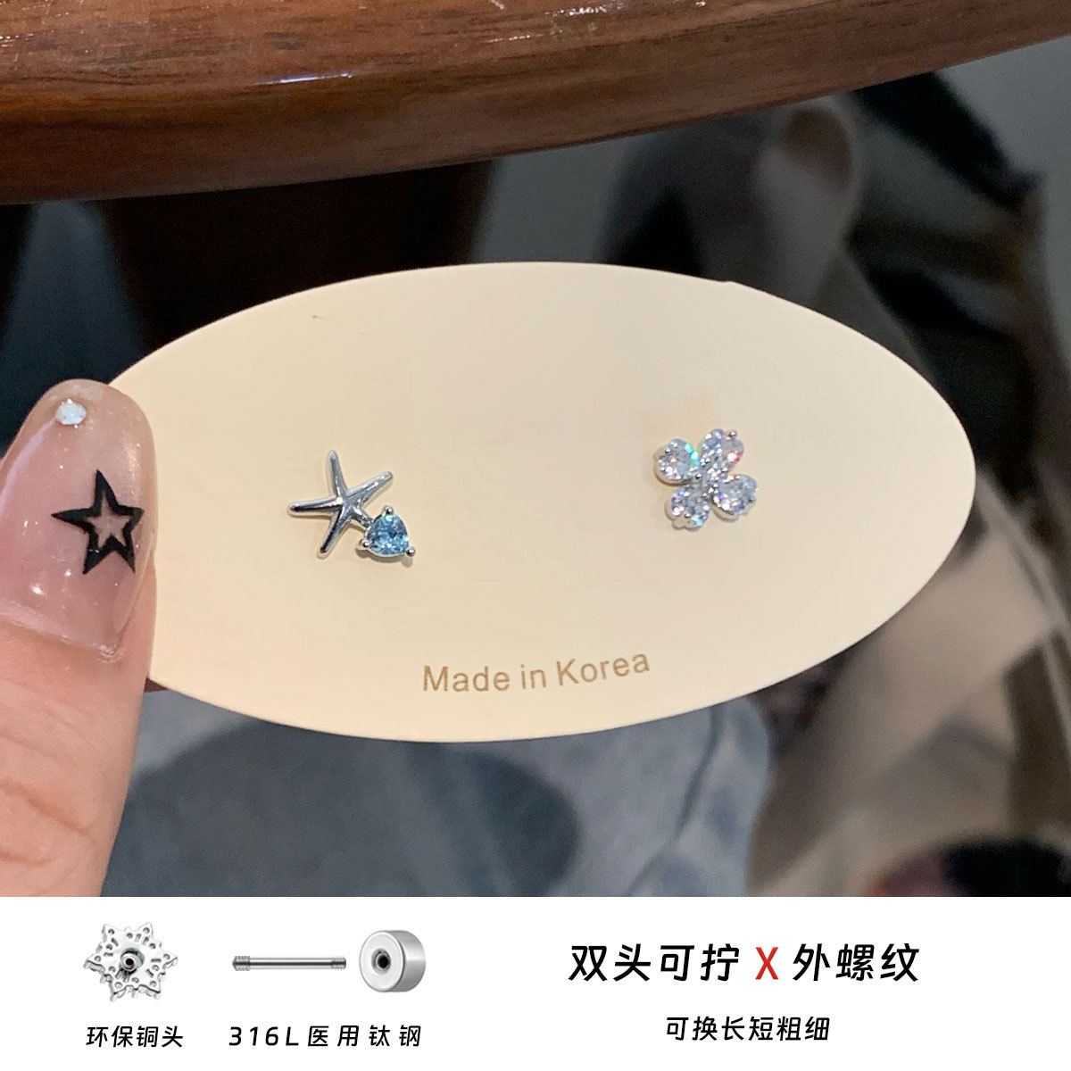 简约四叶草耳钉316L钛钢耳饰海洋动物海星钛钢耳骨钉