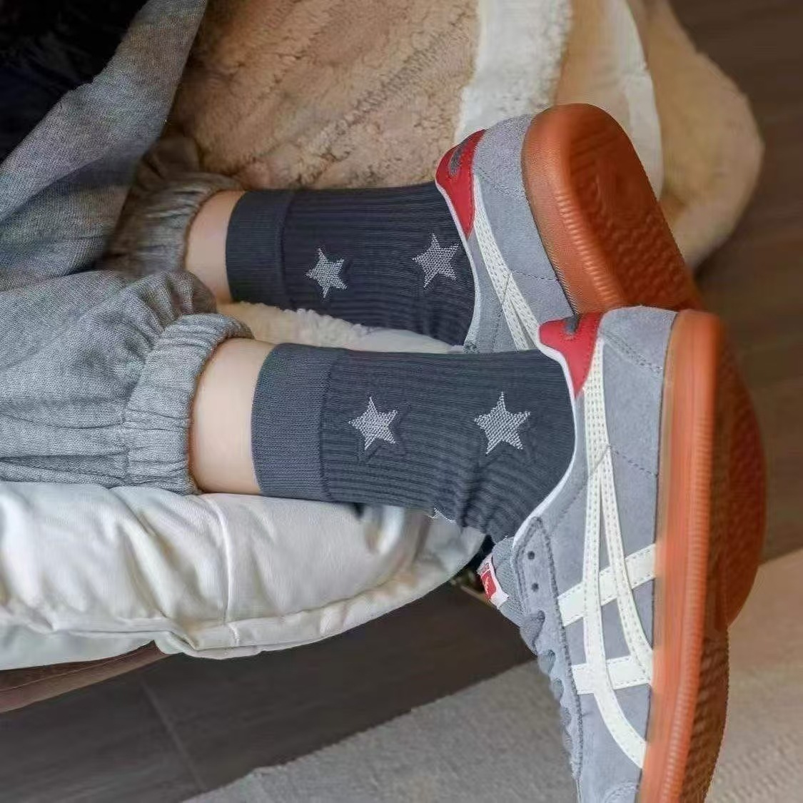 秋冬新作靴下女性個性五角星綿靴下高ゴム中筒女性靴下骨なしレジャースポーツ靴下