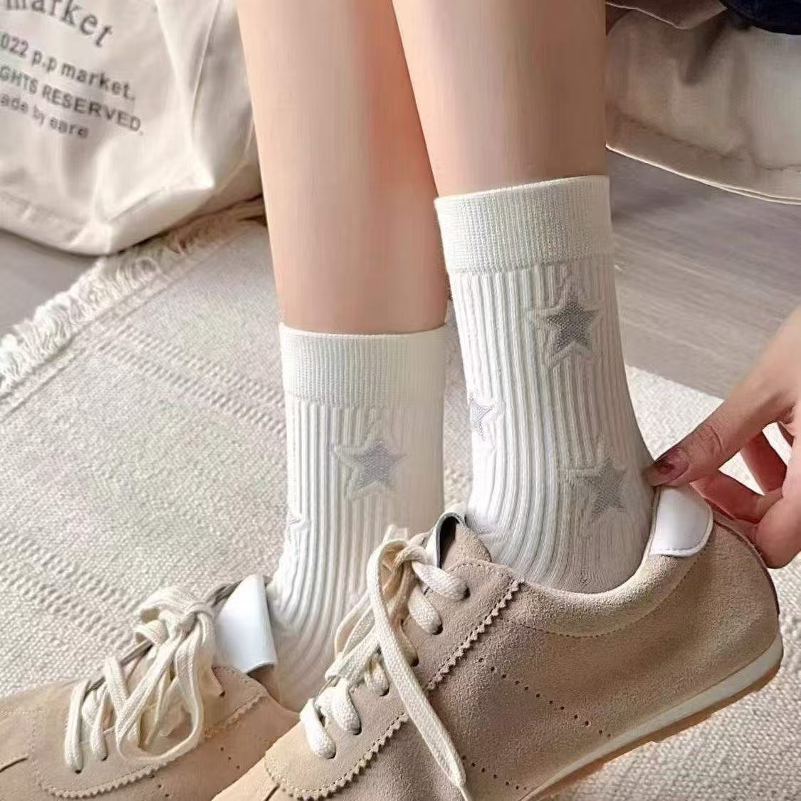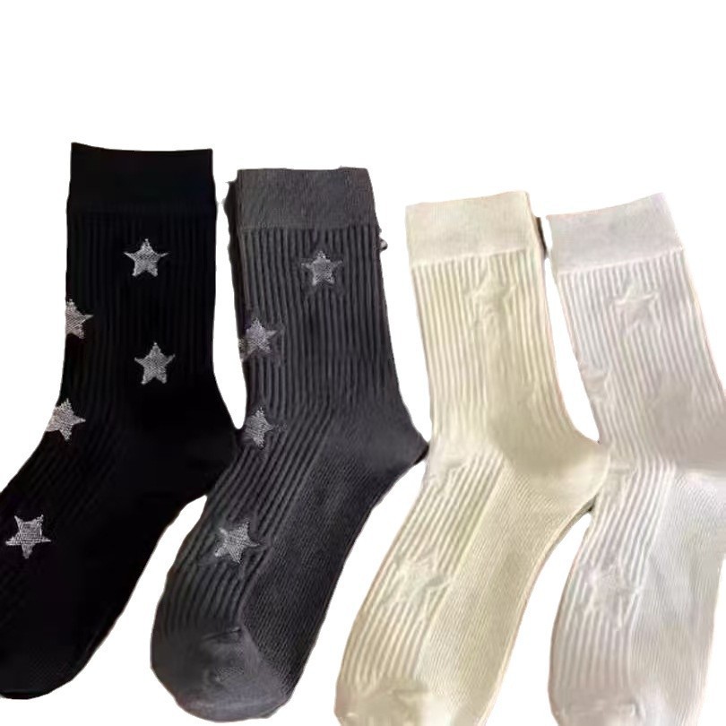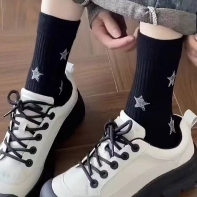 秋冬款袜子女士个性五角星棉袜高橡筋中筒女袜无骨休闲百搭运动袜