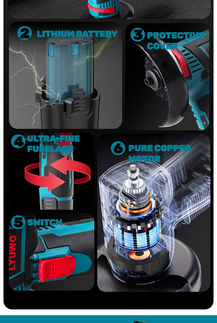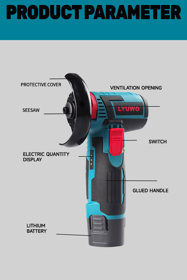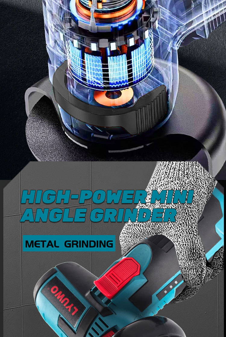 国境を越えたポータブル電動小型アングルグラインダー、リチウム電池式小型グラインダー、多機能研磨機、建設現場切断機、ワイヤレス