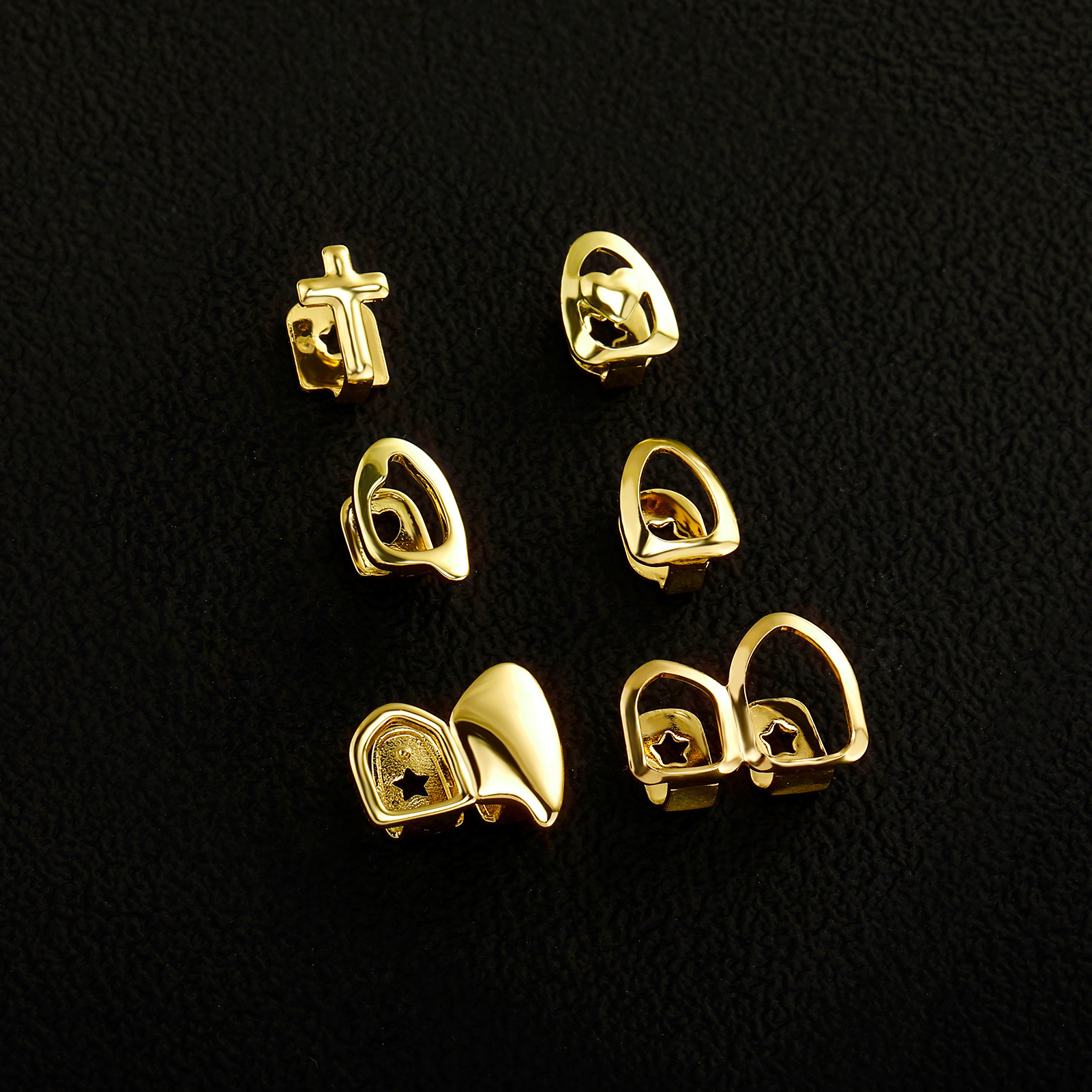 O字镂空星星金牙光面单颗锆石牙套亚马逊TEMU爆款个性牙套批发
