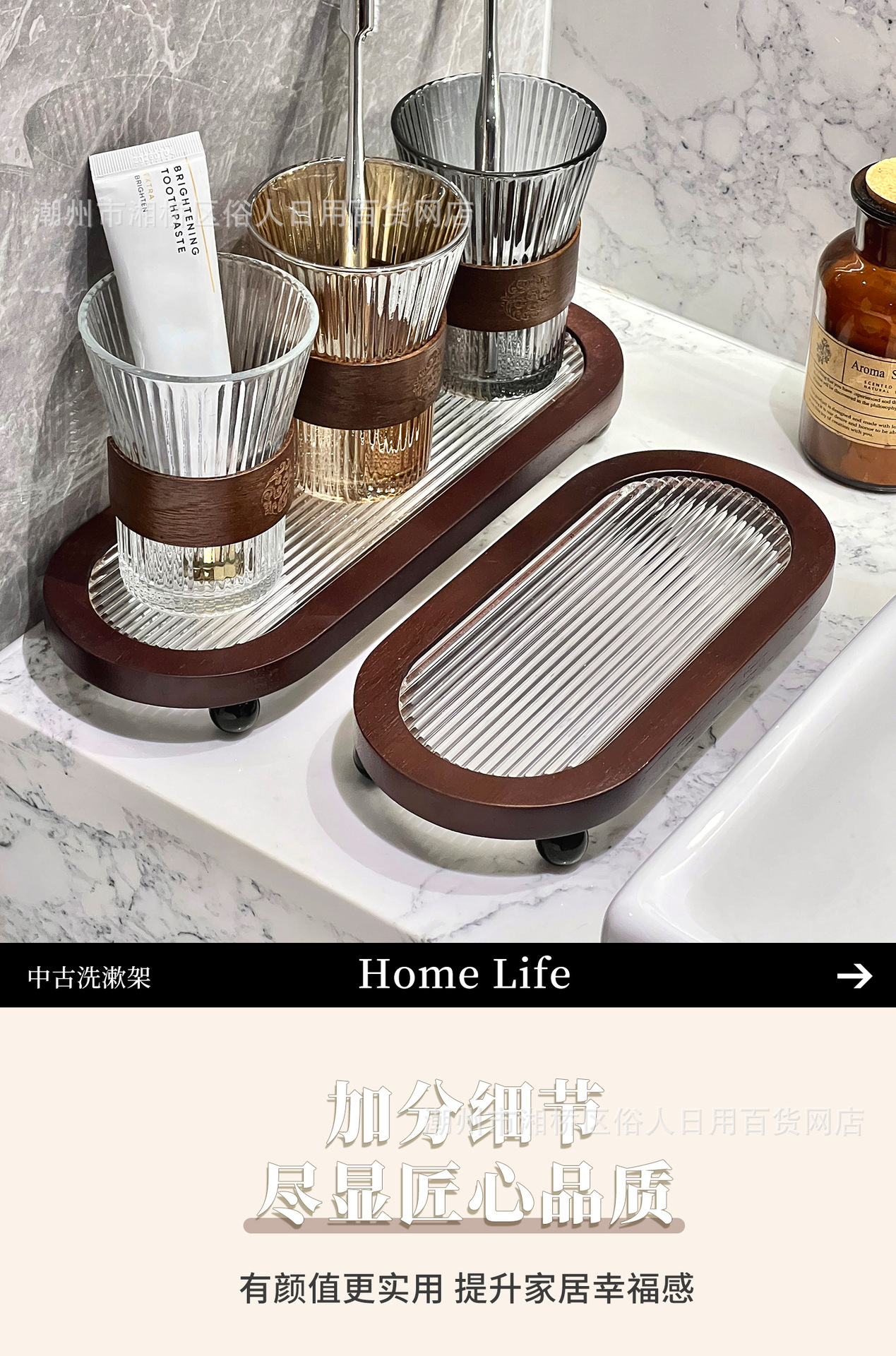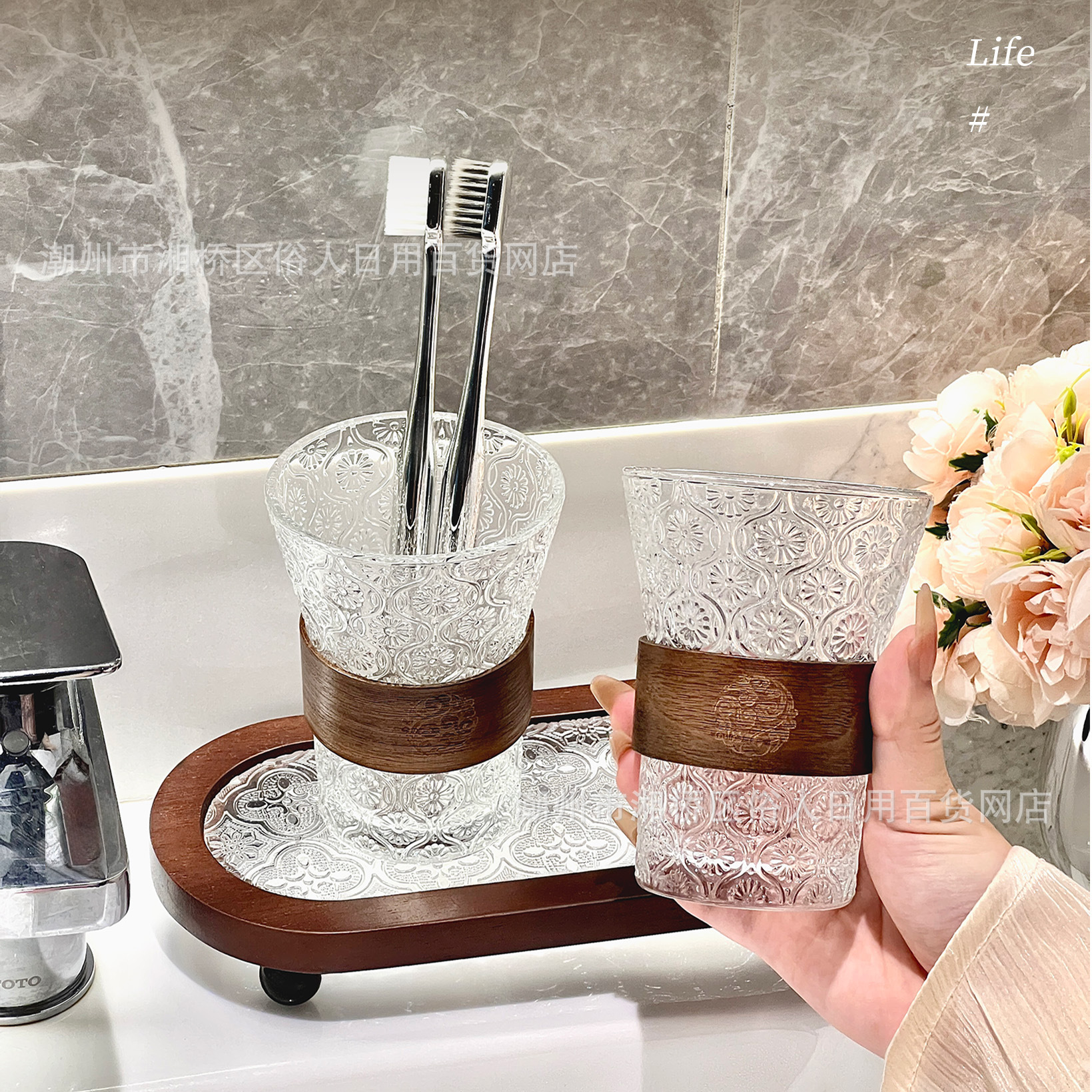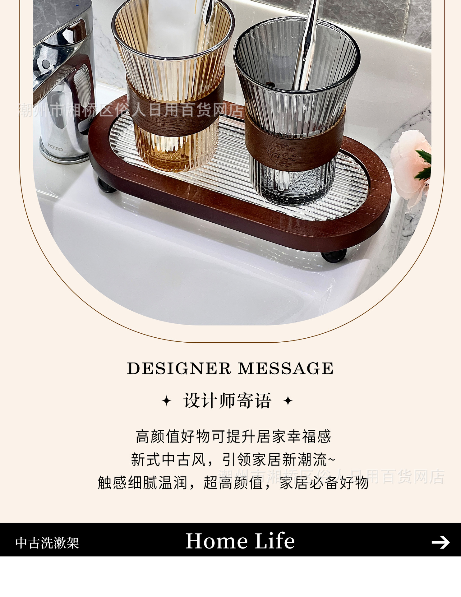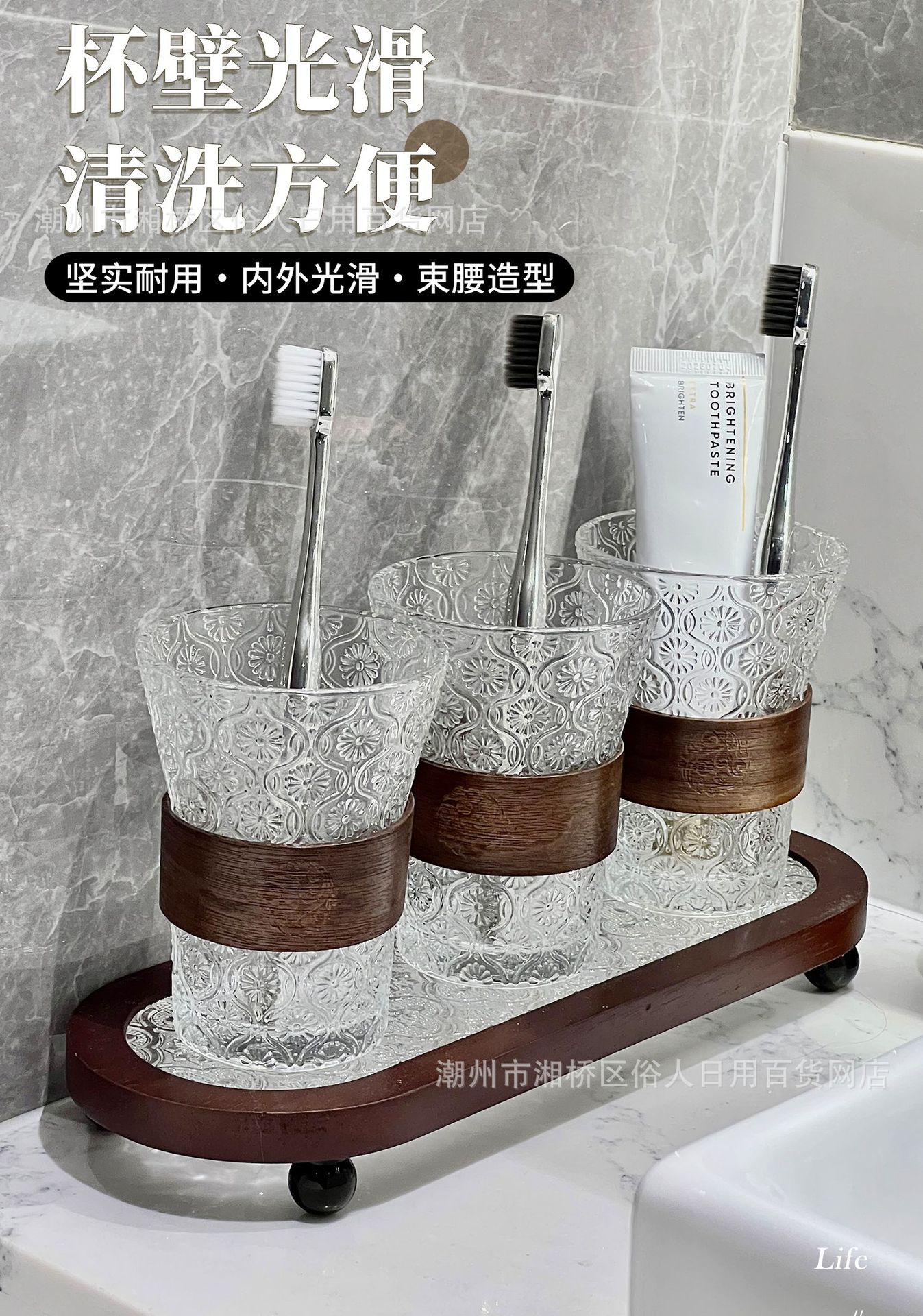 中古风漱口杯套装收纳架高颜值玻璃口杯一体卫生间洗漱台面置物架