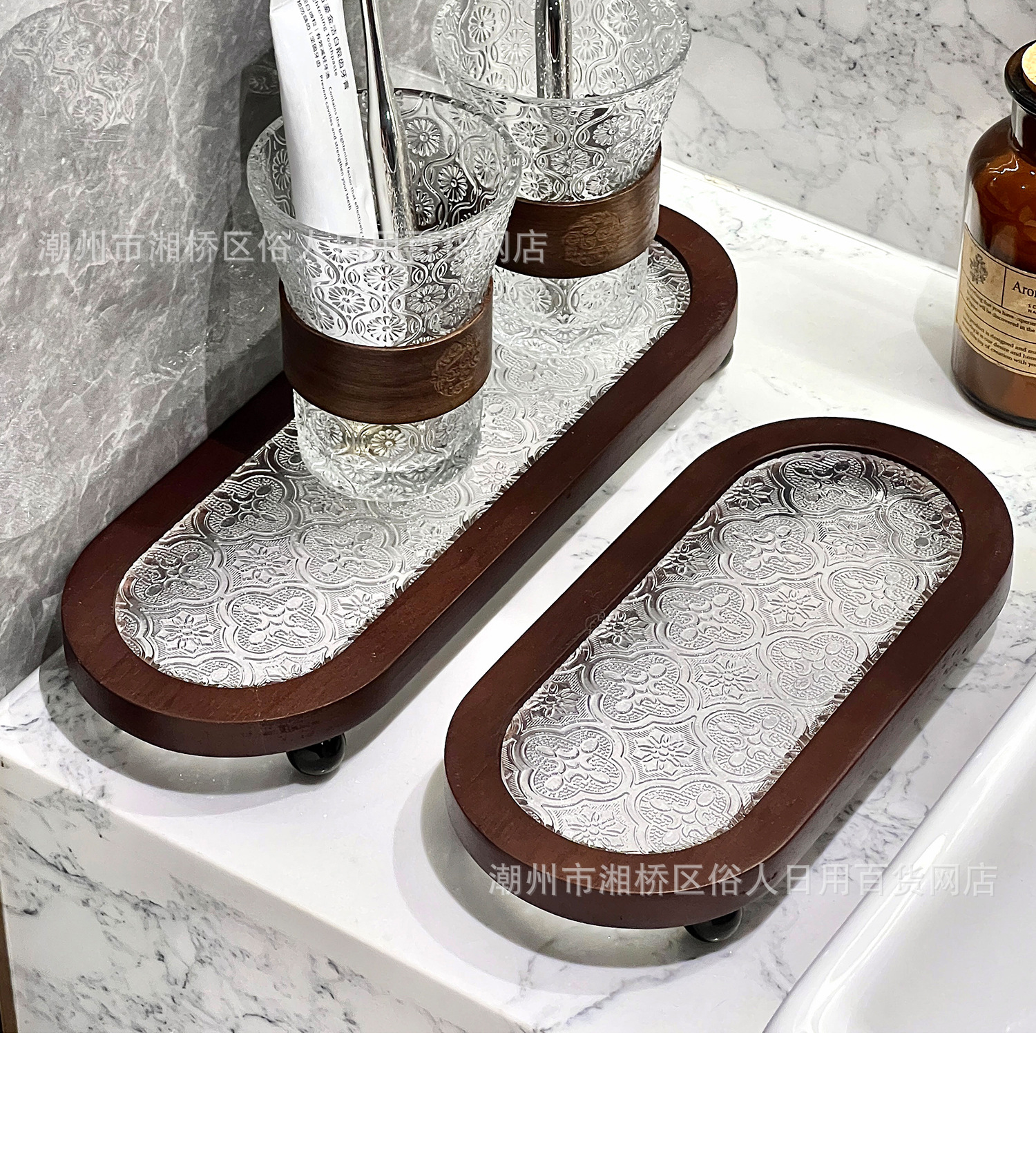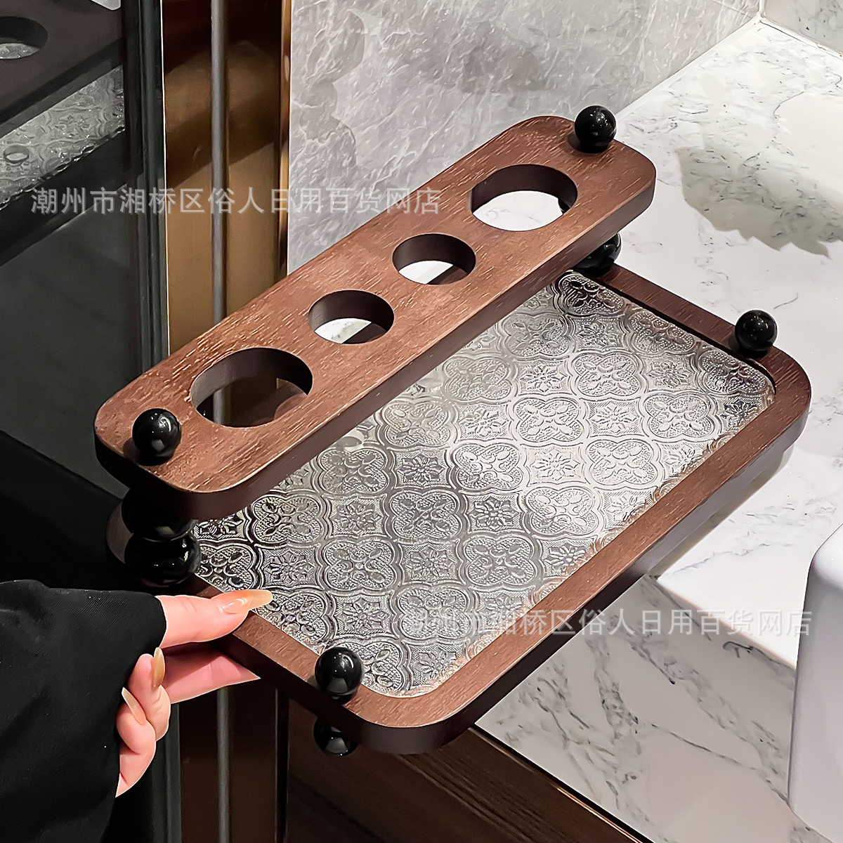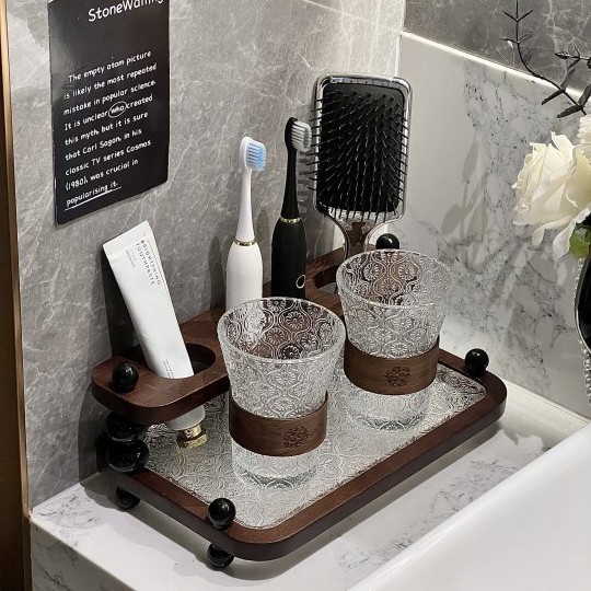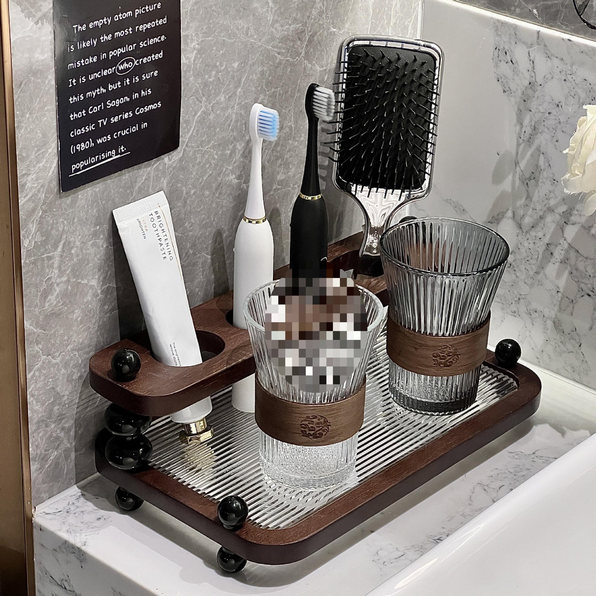 中古风漱口杯套装收纳架高颜值玻璃口杯一体卫生间洗漱台面置物架