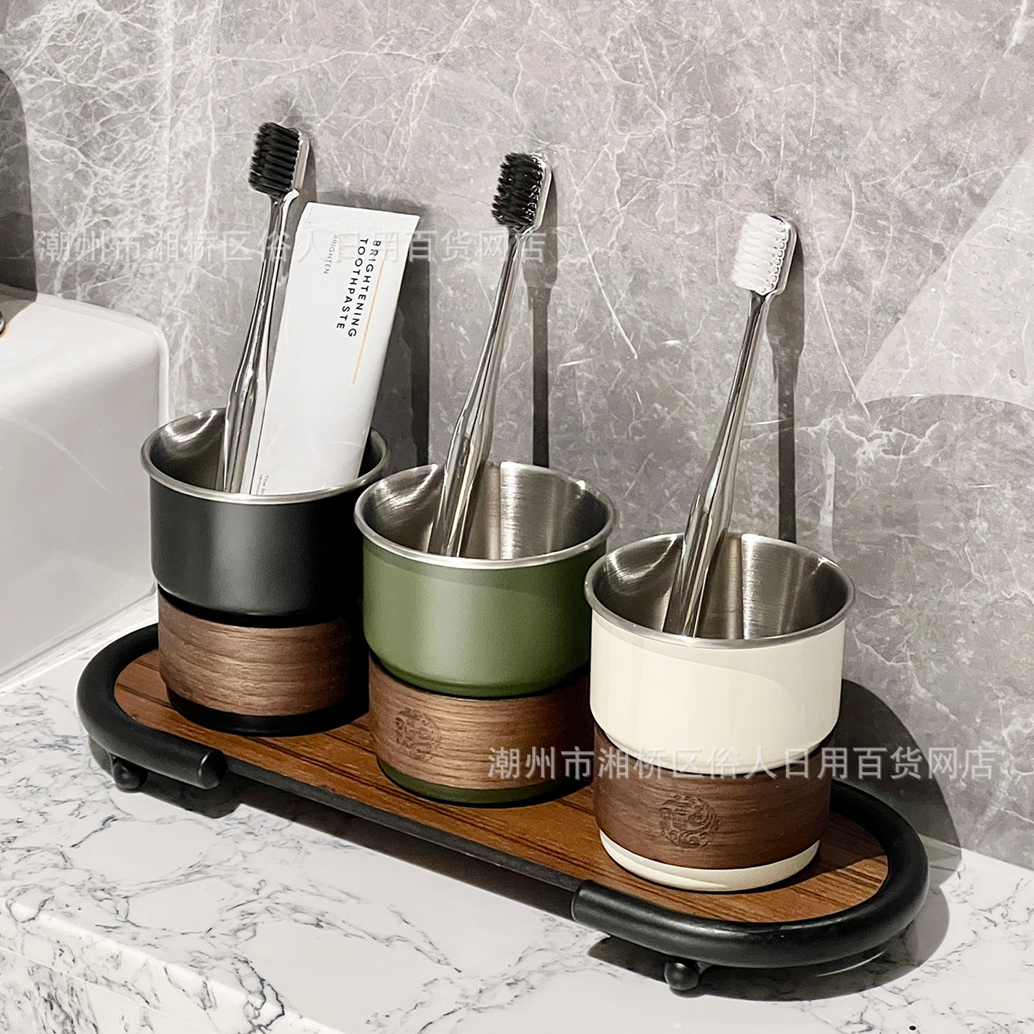 复古实木洗漱牙刷家用卫生间电动牙刷高级置物架套装漱口杯刷牙