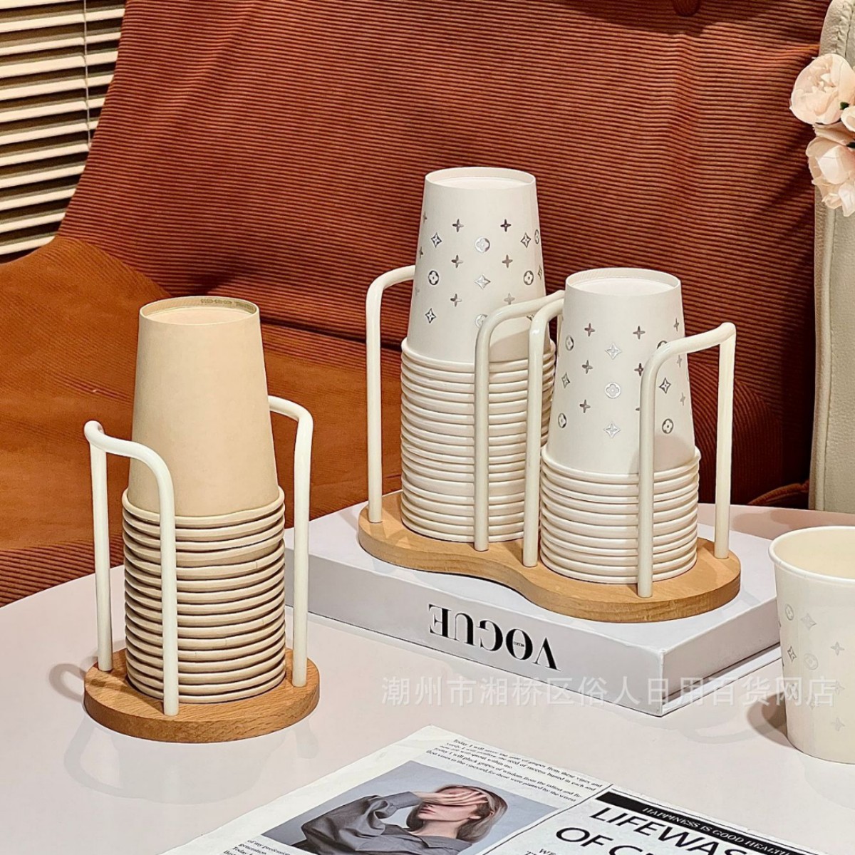 榉木纸杯架一次性杯子取杯器桌面茶几收纳置物架茶杯咖啡杯杯架
