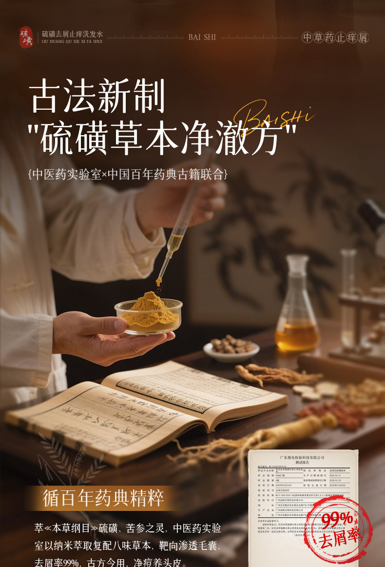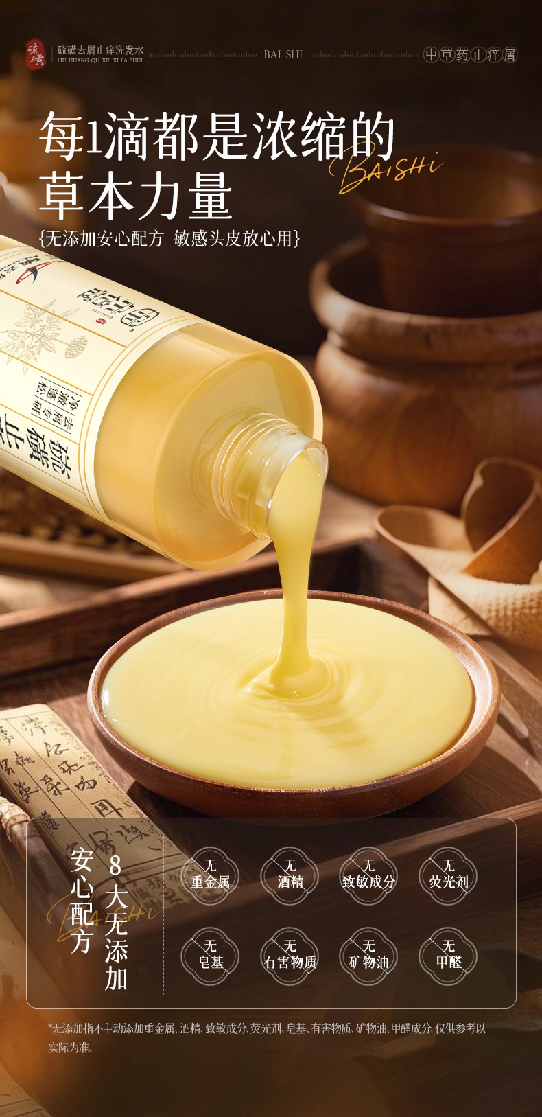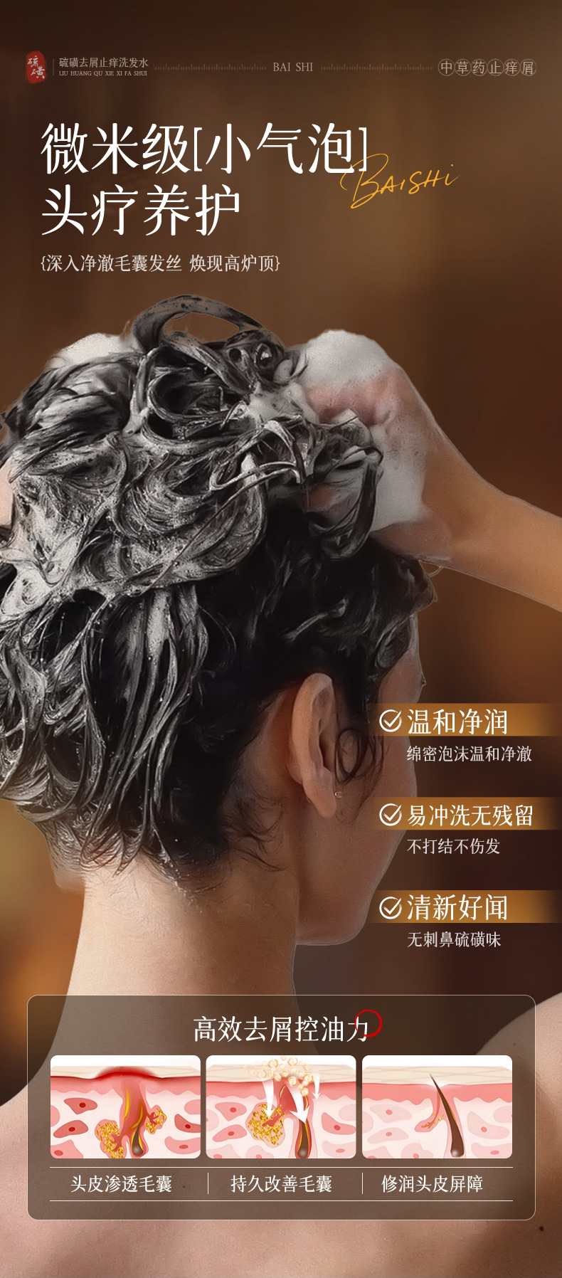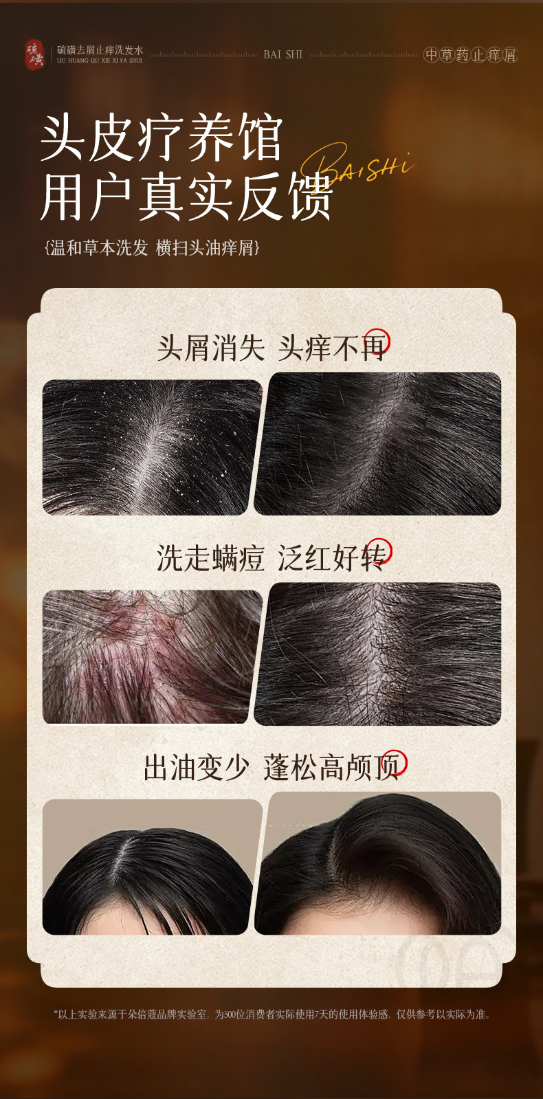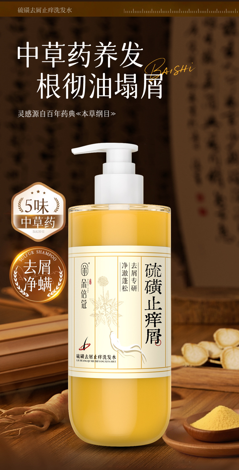国货草药硫磺去屑止痒洗发水控油蓬松毛囊清洁除螨沐浴洗头液现货